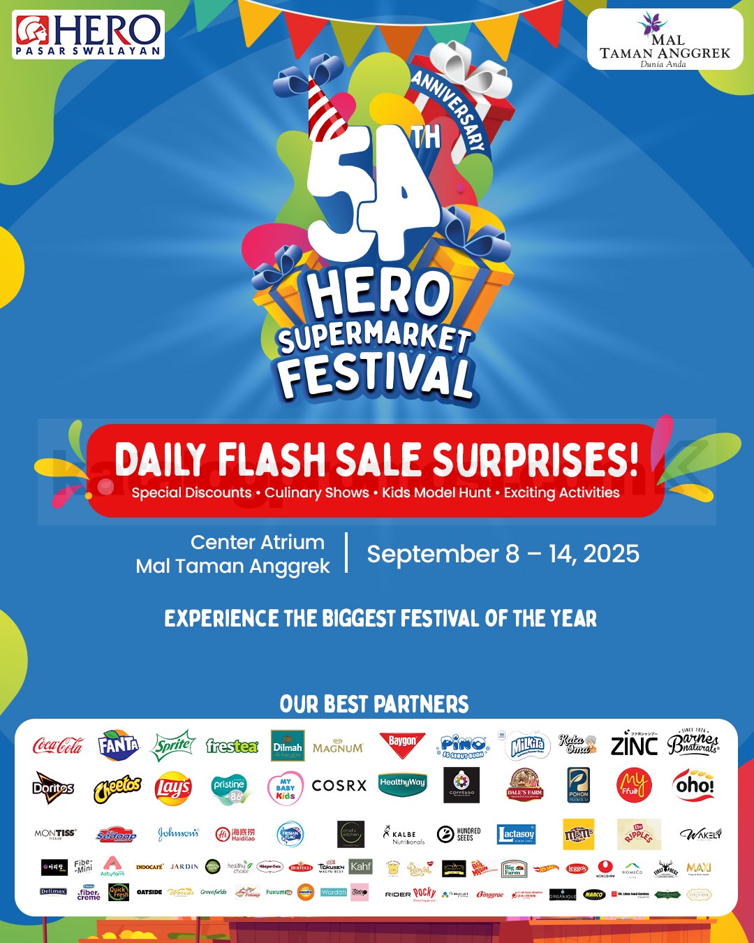 54th HERO Supermarket Festival di Mal Taman Anggrek 8–14 September 2025 hadir dengan flash sale, cooking demo, kids show, model hunt, dan promo seru