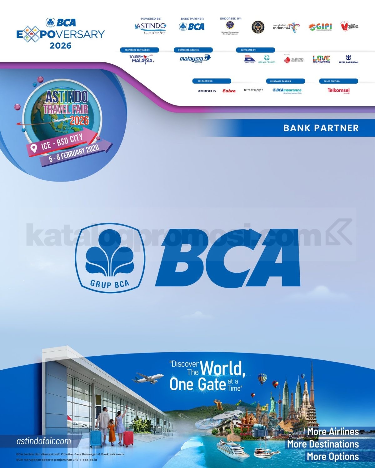 ASTINDO Travel Fair 2026 di ICE BSD City berlangsung tanggal 05 – 08 Februari 2026 sebagai bagian dari rangkaian BCA Expoversary 2026, menghadirkan pelaku industri perjalanan dalam satu pameran terpadu.