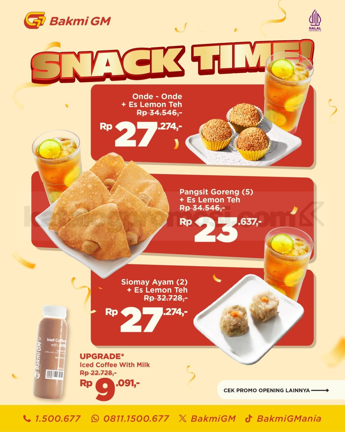 • Menu promo tersedia untuk dine in dan takeaway, sementara promo Snack Time juga berlaku untuk delivery