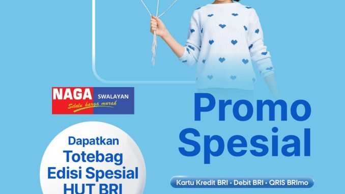 Promo NAGA SWALAYAN HUT BRI Gratis Totebag berlaku tanggal 16 – 19 Desember 2025 dengan minimum belanja Rp. 500.000 menggunakan kartu BRI atau QRIS BRImo.