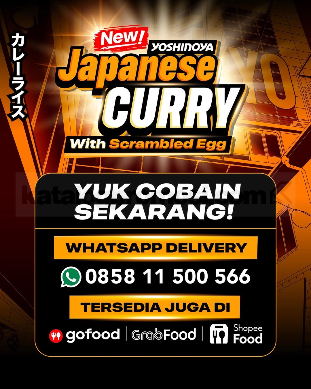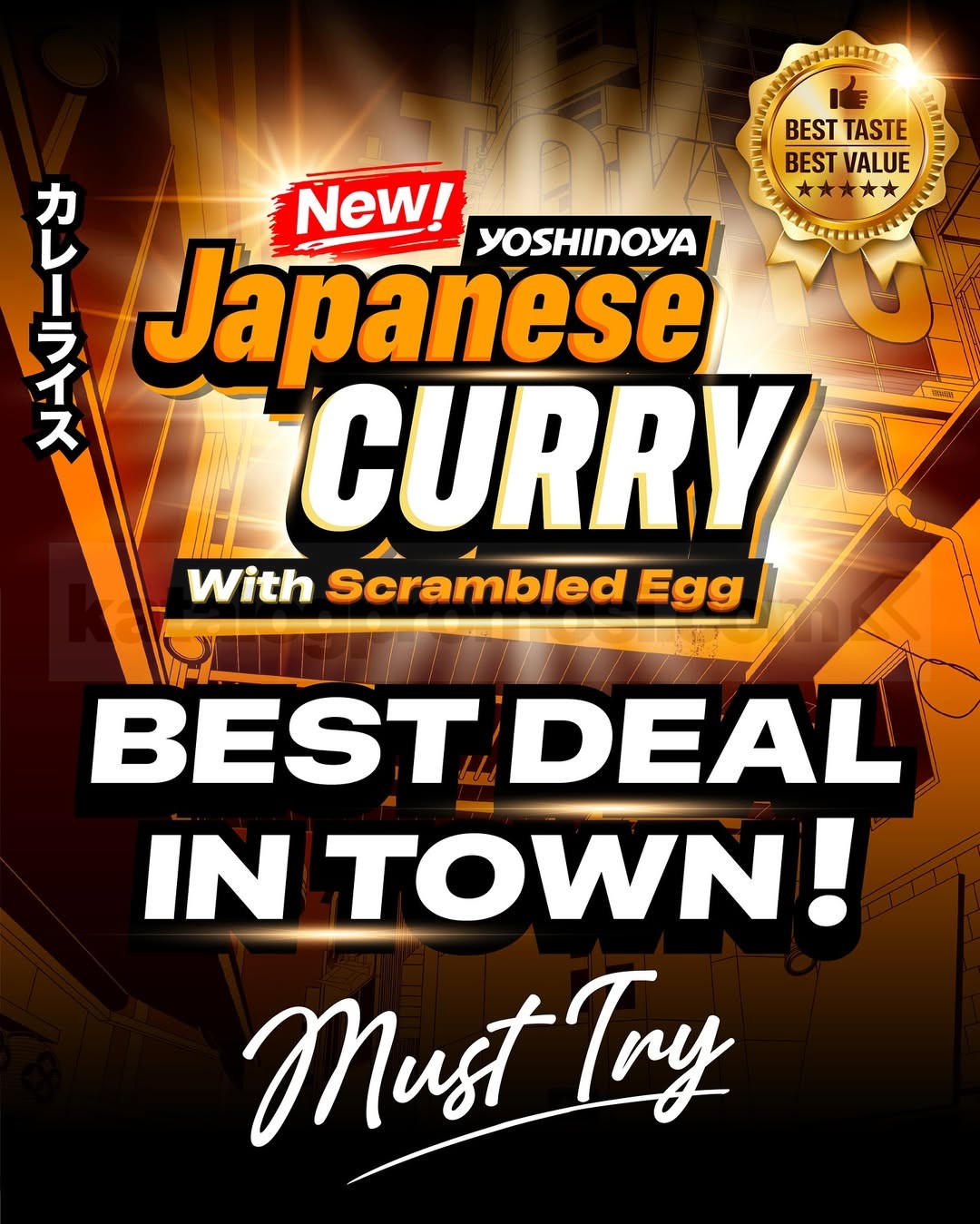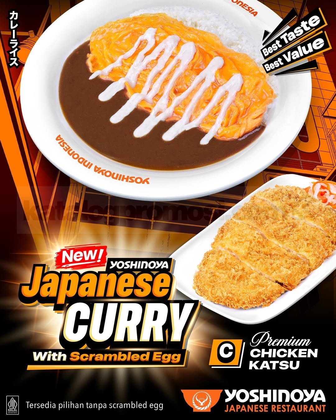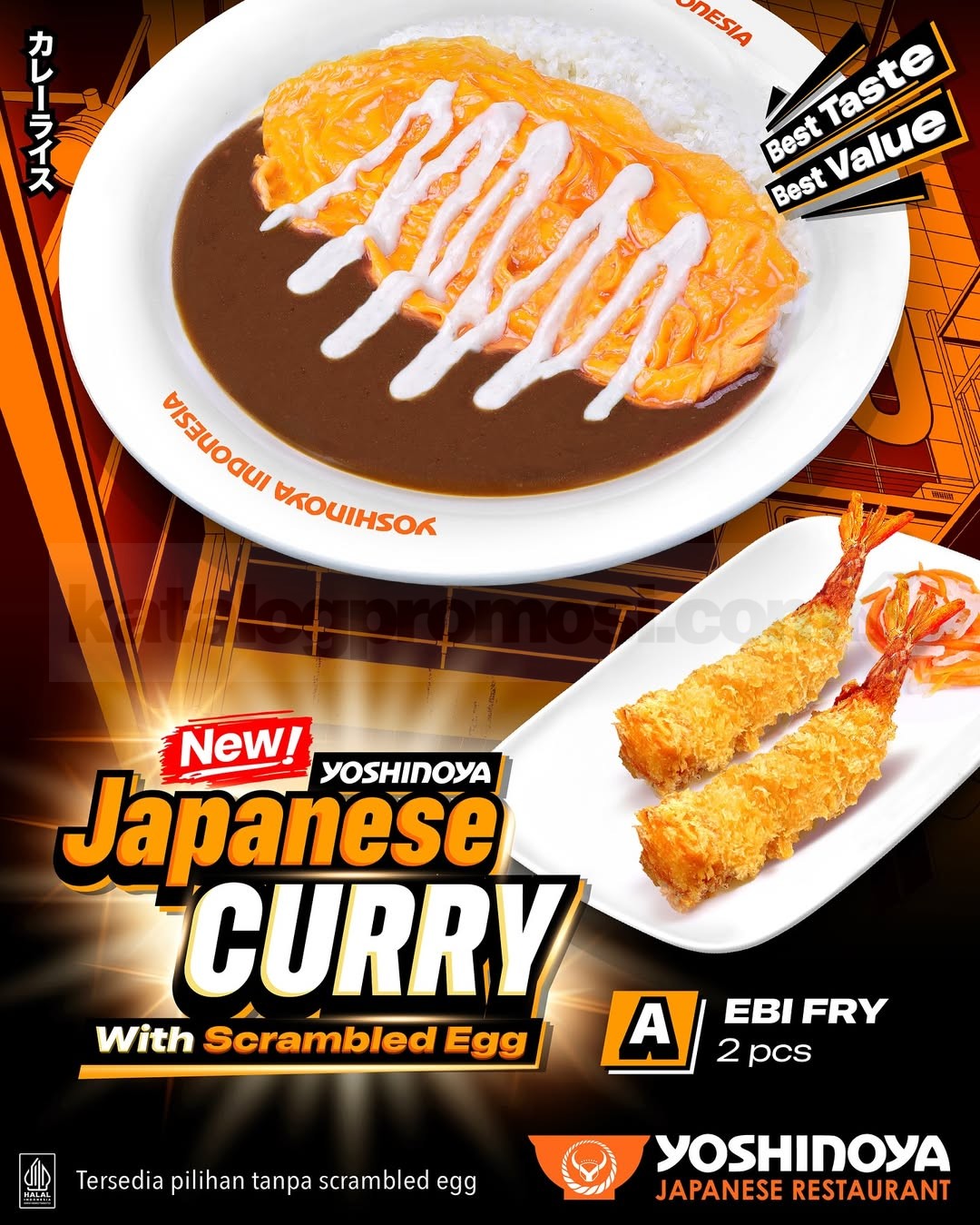 Menu Yoshinoya Japanese Curry Scrambled Egg ini tersedia di seluruh store Yoshinoya Indonesia. Bisa dine in, takeaway, delivery, atau order via GoFood, GrabFood, dan ShopeeFood. Best Taste, Best Value pokoknya 💯