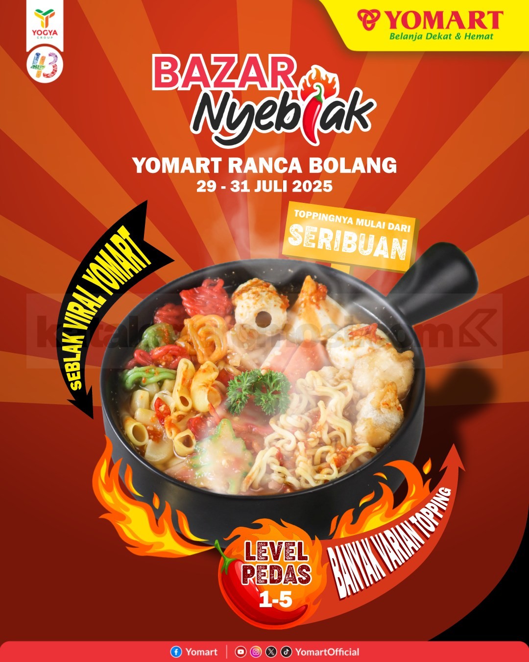Bazar Nyeblak Yomart Ranca Bolang hadir dengan topping mulai seribuan dan level pedas 1–5, berlaku mulai tanggal 29–31 Juli 2025!
