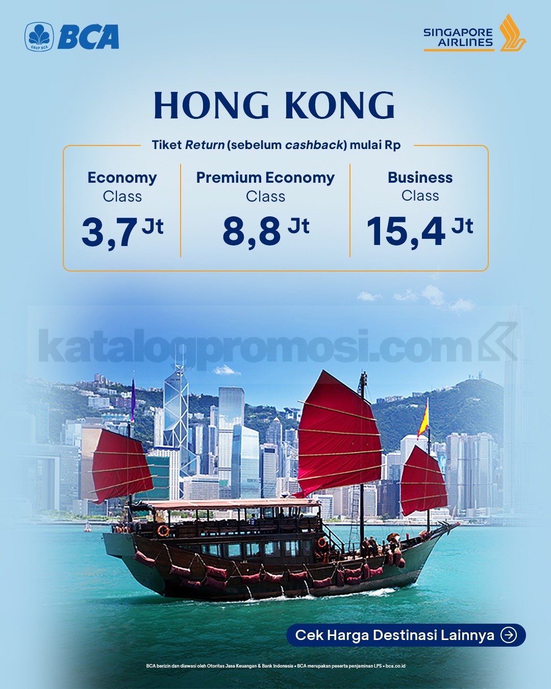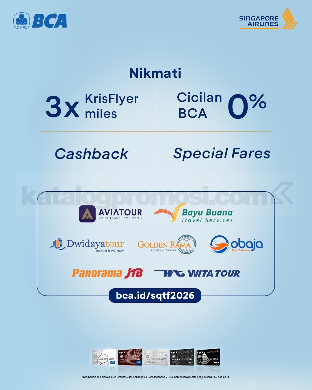 Special fares, cashback kartu BCA, cicilan 0%, KrisFlyer miles, hingga benefit perjalanan tambahan.