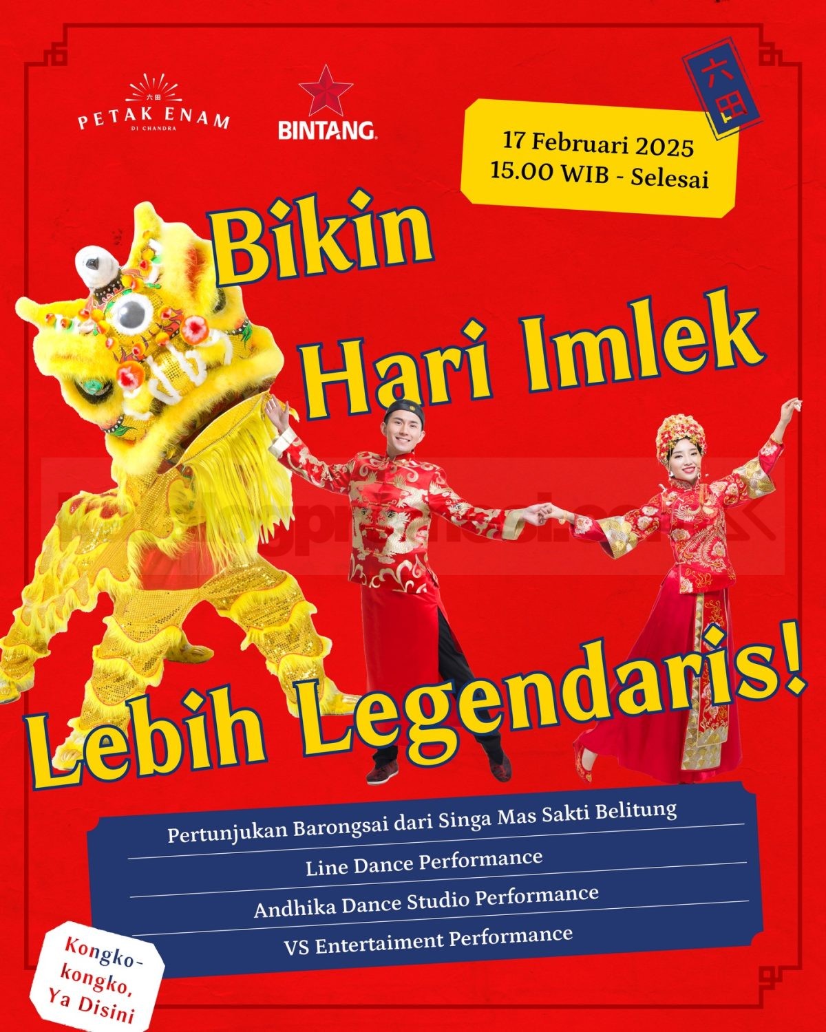 Bikin Hari Imlek Lebih Legendaris! di Petak Enam Chandra Pantjoran Glodok berlangsung 17 Februari 2025 dengan pertunjukan barongsai dan performance spesial.