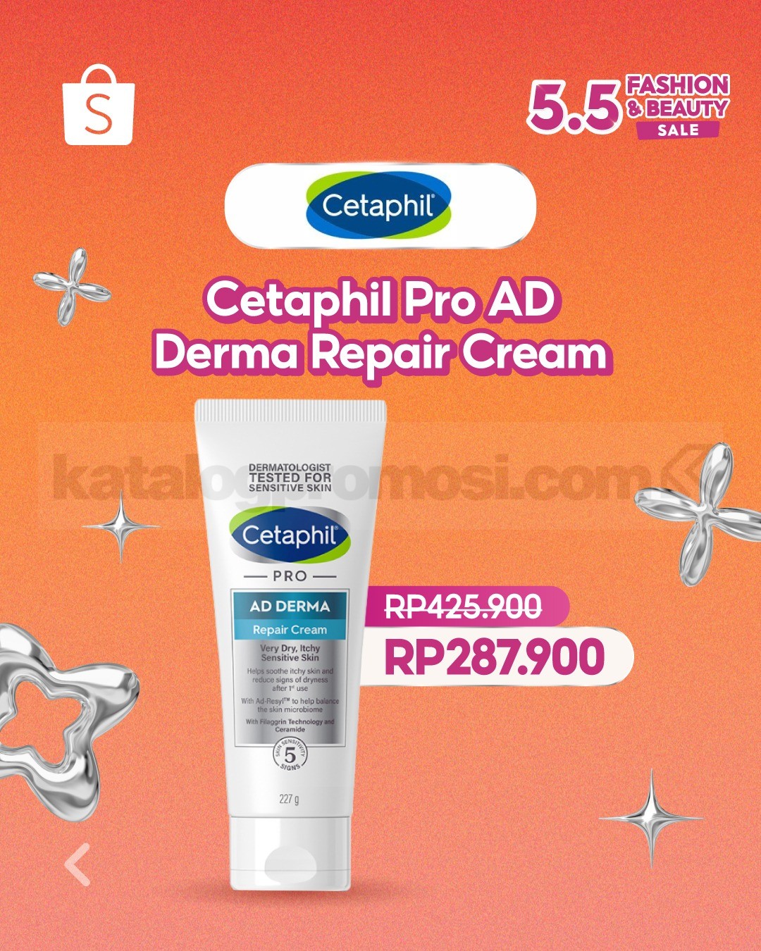 Lagi cari skincare buat kulit kering, sensitif, atau gampang gatal? Sekarang waktu yang pas! π Ada promo Cetaphil di Shopee 5.5, di mana kamu bisa dapetin Cetaphil Pro AD Derma Repair Cream dengan harga diskon! πΈ