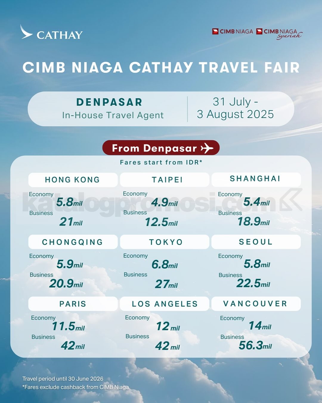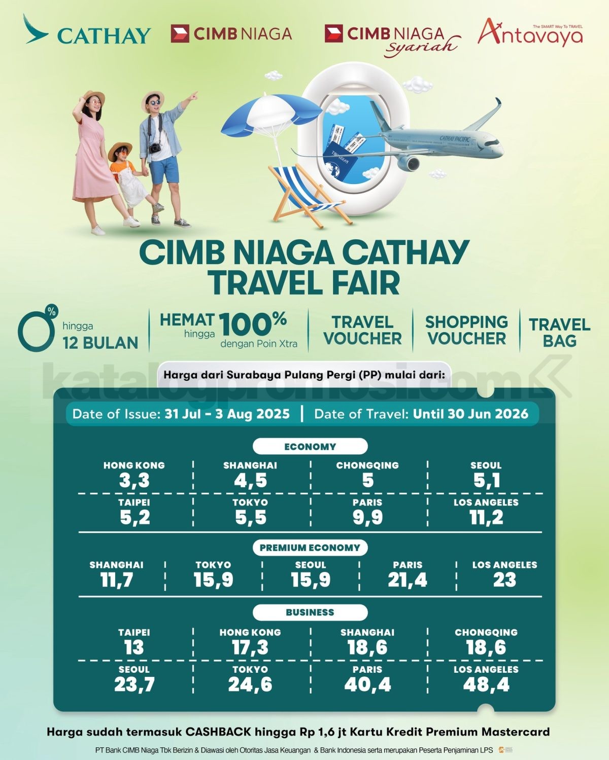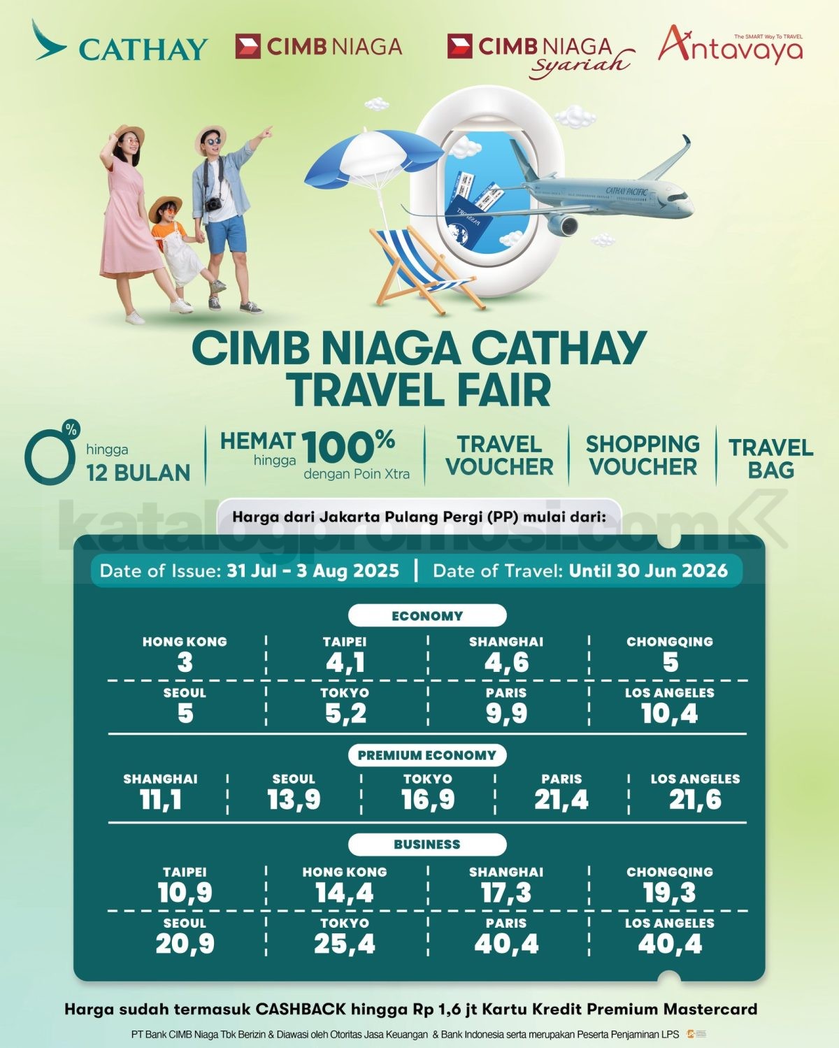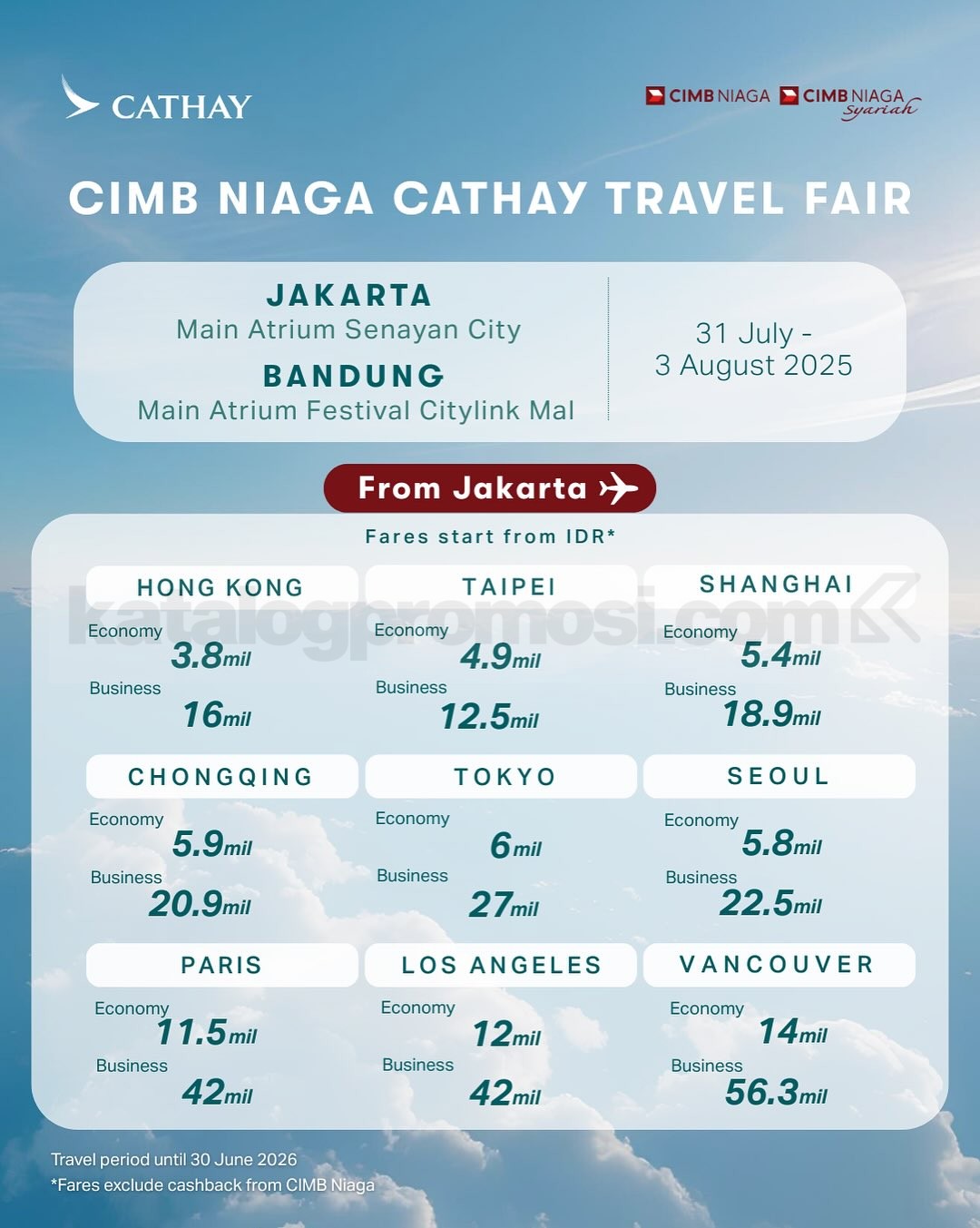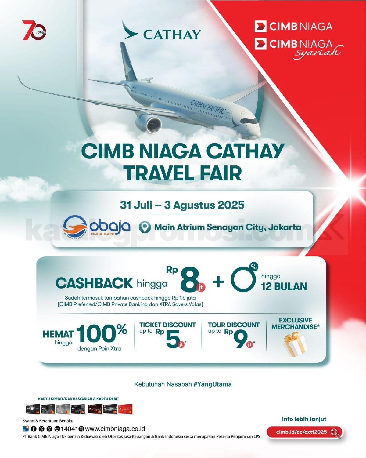 CIMB Niaga Cathay Travel Fair 2026 Serentak di 4 Kota berlaku tanggal 5 – 8 Februari 2026 dengan promo perjalanan internasional khusus pengguna kartu CIMB Niaga