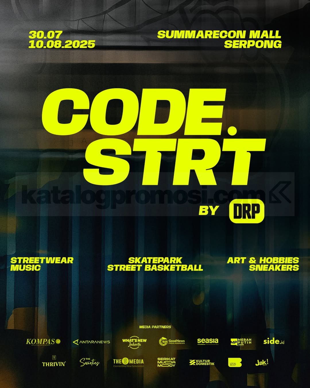 Summarecon Mall Serpong bakal jadi pusat street culture yang seru banget bareng CODE.STRT by DRP! Mulai tanggal 30 Juli sampai 10 Agustus 2025, kamu bisa eksplor lebih dari 50 brand streetwear, kolaborasi eksklusif, sneakers, art installations, F&B, hingga area komunitas yang ngebawa vibes anak muda kota.