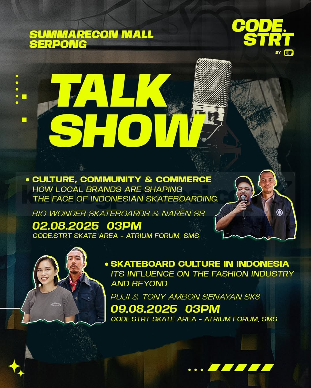 CODE.STRT by DRP di Summarecon Mall Serpong berlangsung mulai tanggal 30 Juli – 10 Agustus 2025! Nikmati experience street culture bareng 50+ brand, performance GRATIS dari SAYKOJI & LOMBA SIHIR, sampai komunitas skateboard & basket!