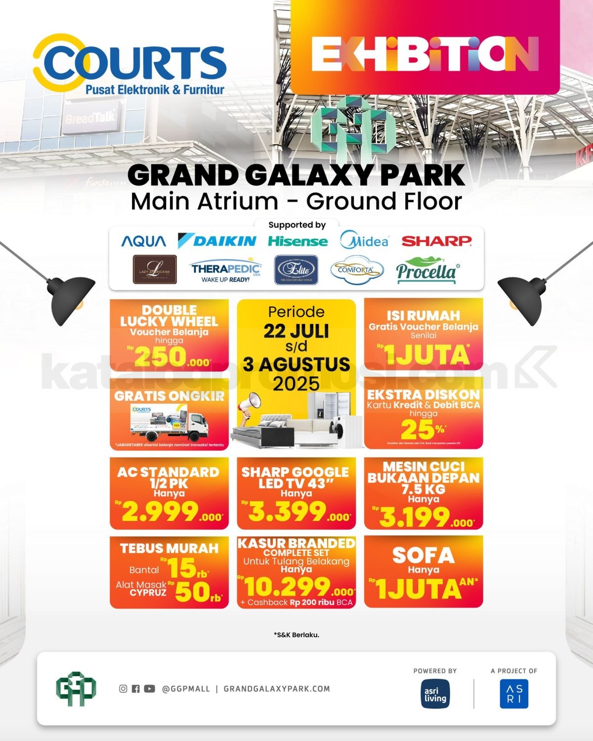 COURTS Exhibition di Grand Galaxy Park mulai tanggal 22 Juli 2025! Diskon hingga 25%, voucher Rp1 juta, tebus murah, dan banyak promo menarik lainnya