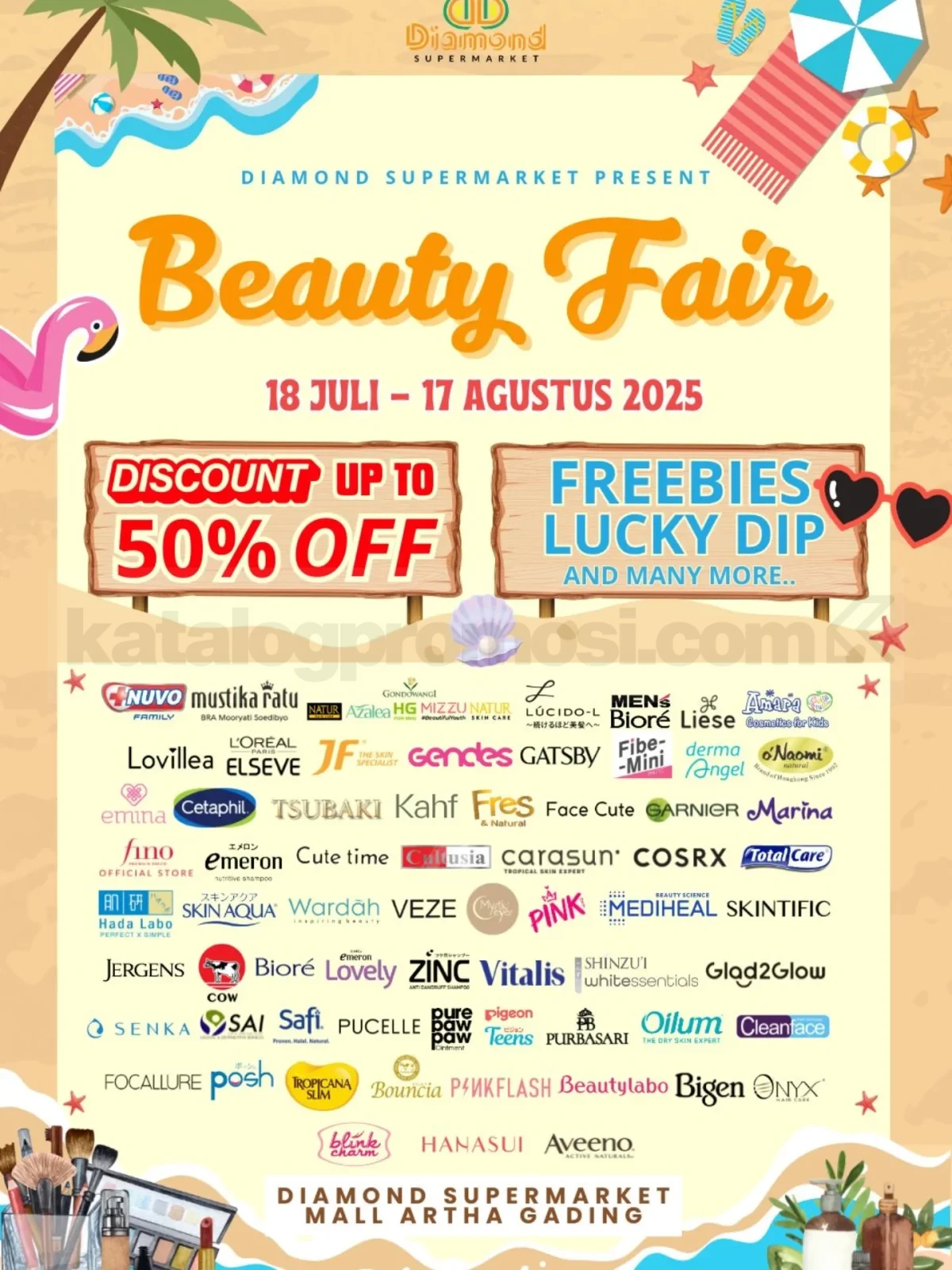 Diamond Supermarket Beauty Fair di Mall Artha Gading diskon hingga 50%, lengkap dengan freebies, skin check, dan lucky dip mulai 18 Juli 2025!
