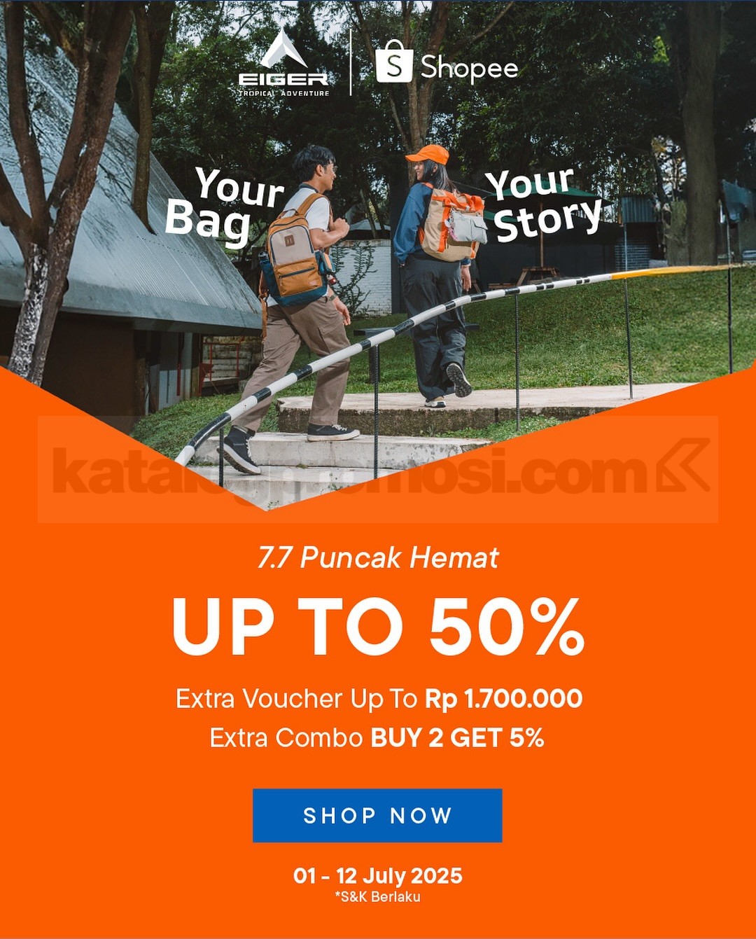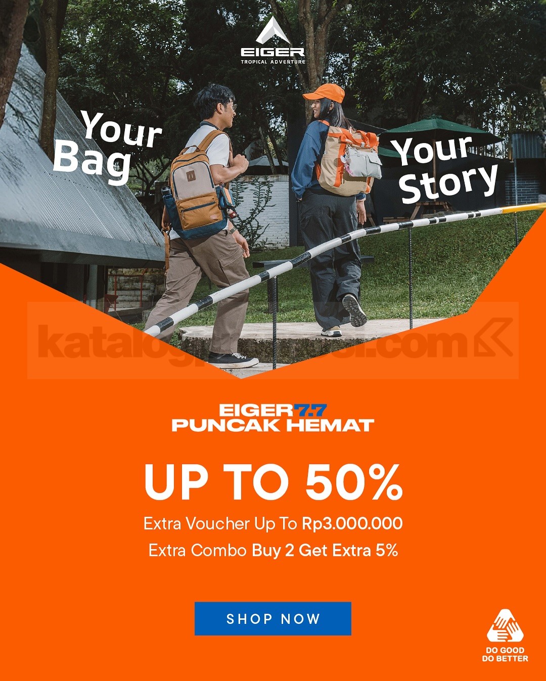 Promo Eiger 9empur Har9a Diskon hingga 50% + Extra Voucher dan Free Shipping.