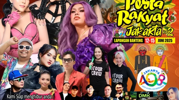 Pesta Rakyat Jakarta di Lapangan Banteng 12–15 Juni 2025 dalam rangka merayakan HUT Jakarta ke-498! Nikmati parade budaya, bazaar kuliner, UMKM, dan hiburan gratis seharian penuh!