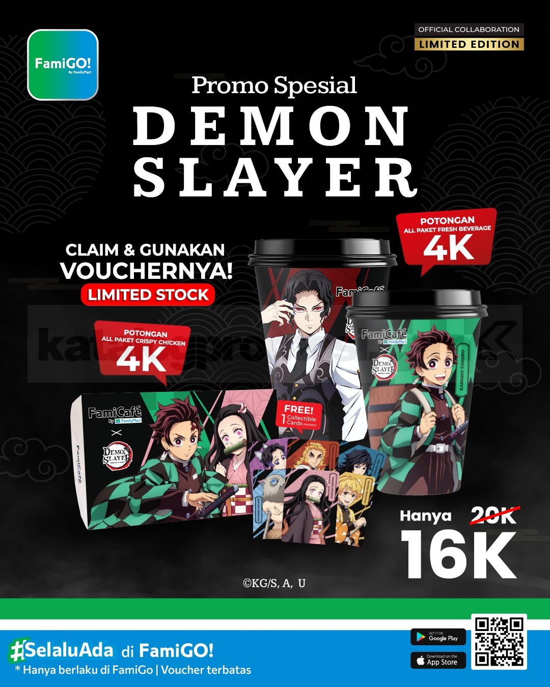 Dengan promo ini, setiap paket minuman segar atau ayam crispy mendapatkan potongan Rp. 4.000 dari harga normal Rp. 20.000. Kamu cukup klaim voucher melalui aplikasi FamiGo! dan langsung nikmati paket kolaborasi ini dengan harga spesial. Promo ini tersedia dalam stok terbatas, jadi pastikan klaim voucher dan dapatkan collectible cup favoritmu sebelum habis.