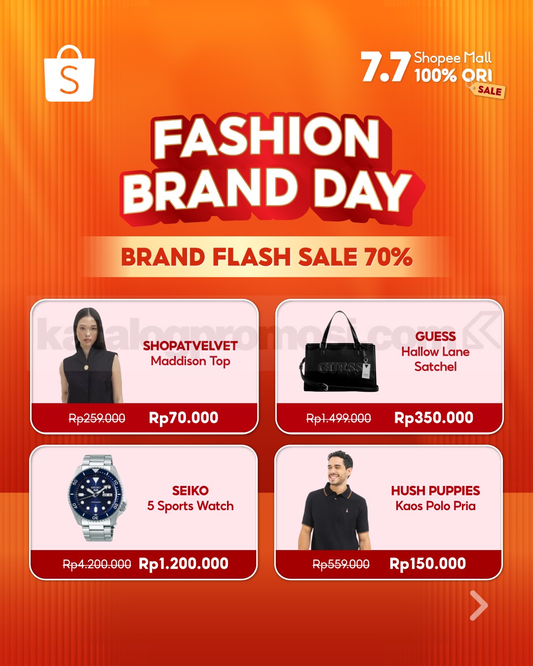 Fashion Brand Day di 7.7 Shopee Mall 100% Ori Sale – BRAND FLASH SALE 70%.