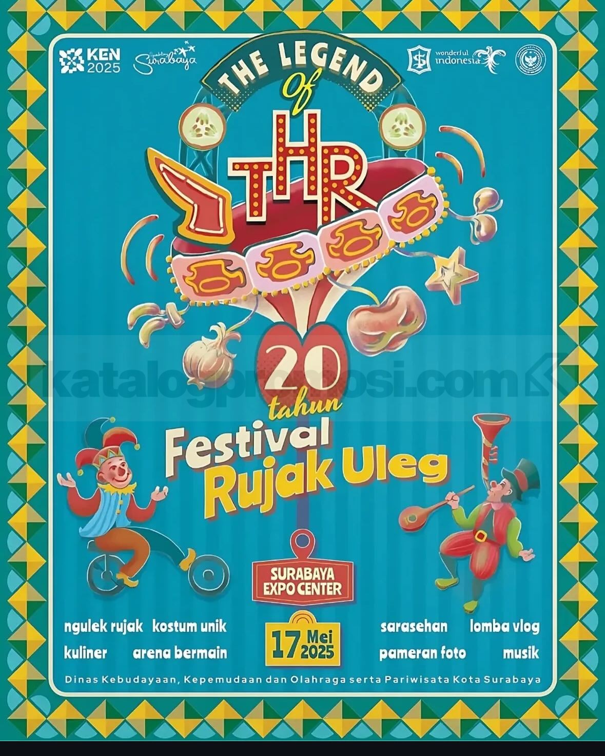 Festival Rujak Uleg 2025 hadir 17 Mei 2025 di Surabaya Expo Center! Perayaan 20 tahun dengan tema The Legend of THR. Yuk ramaikan!