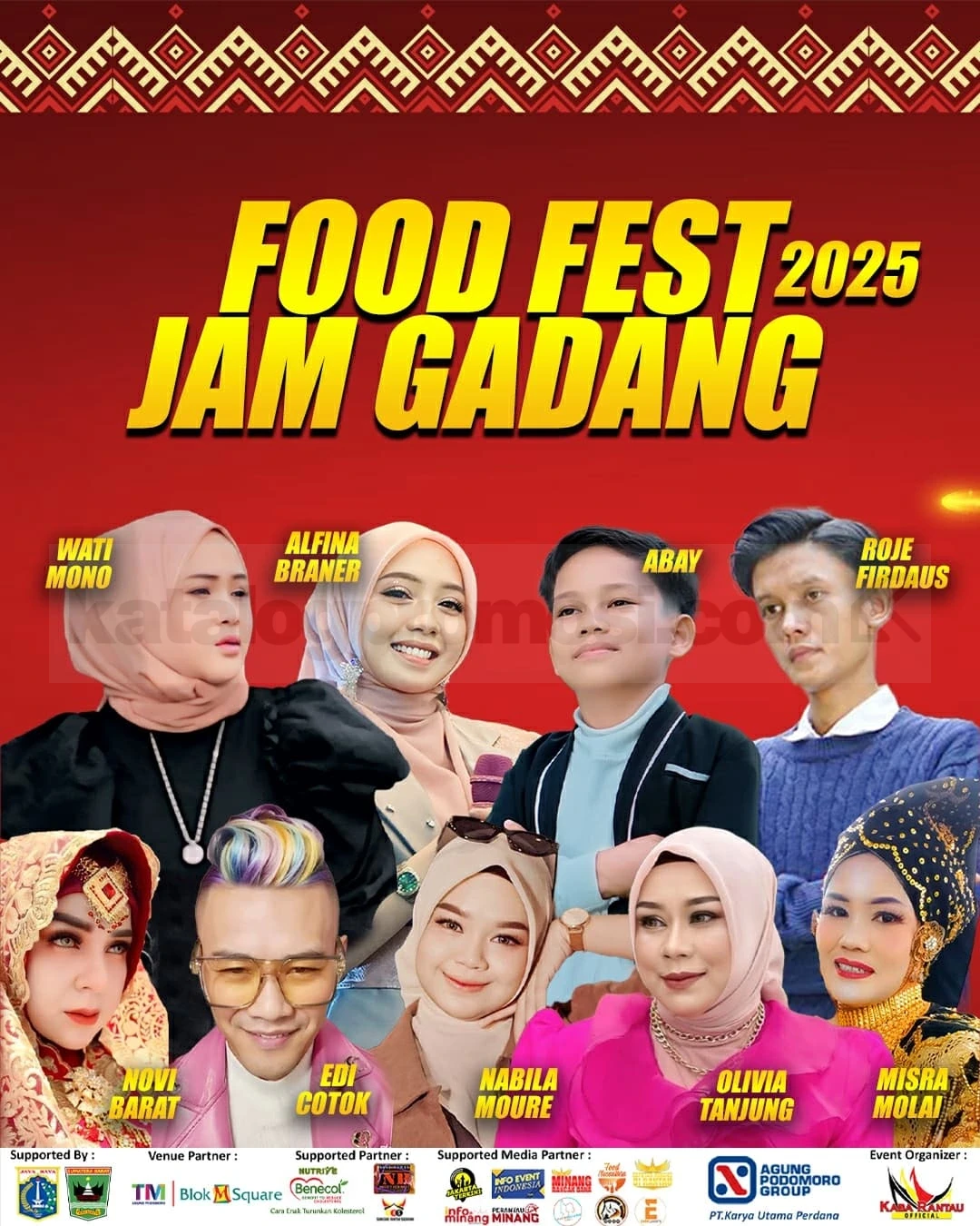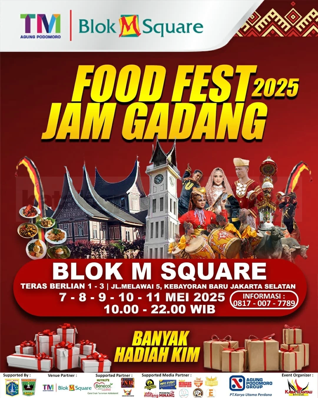 FOOD FEST JAM GADANG 2025 – Festival kuliner Minang & hiburan artis 7–11 Mei di Blok M Square, wajib dikunjungi pencinta makanan Sumatera!