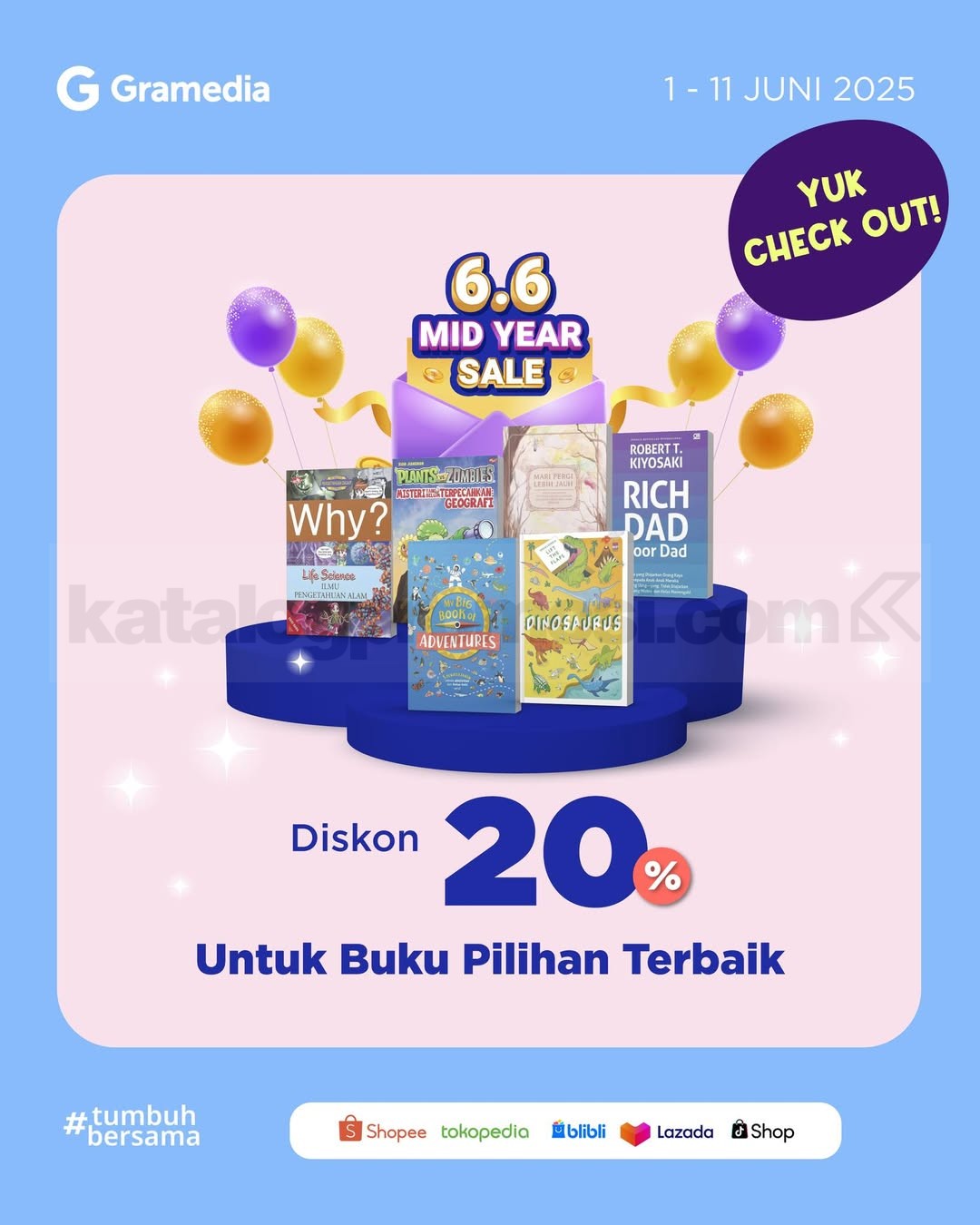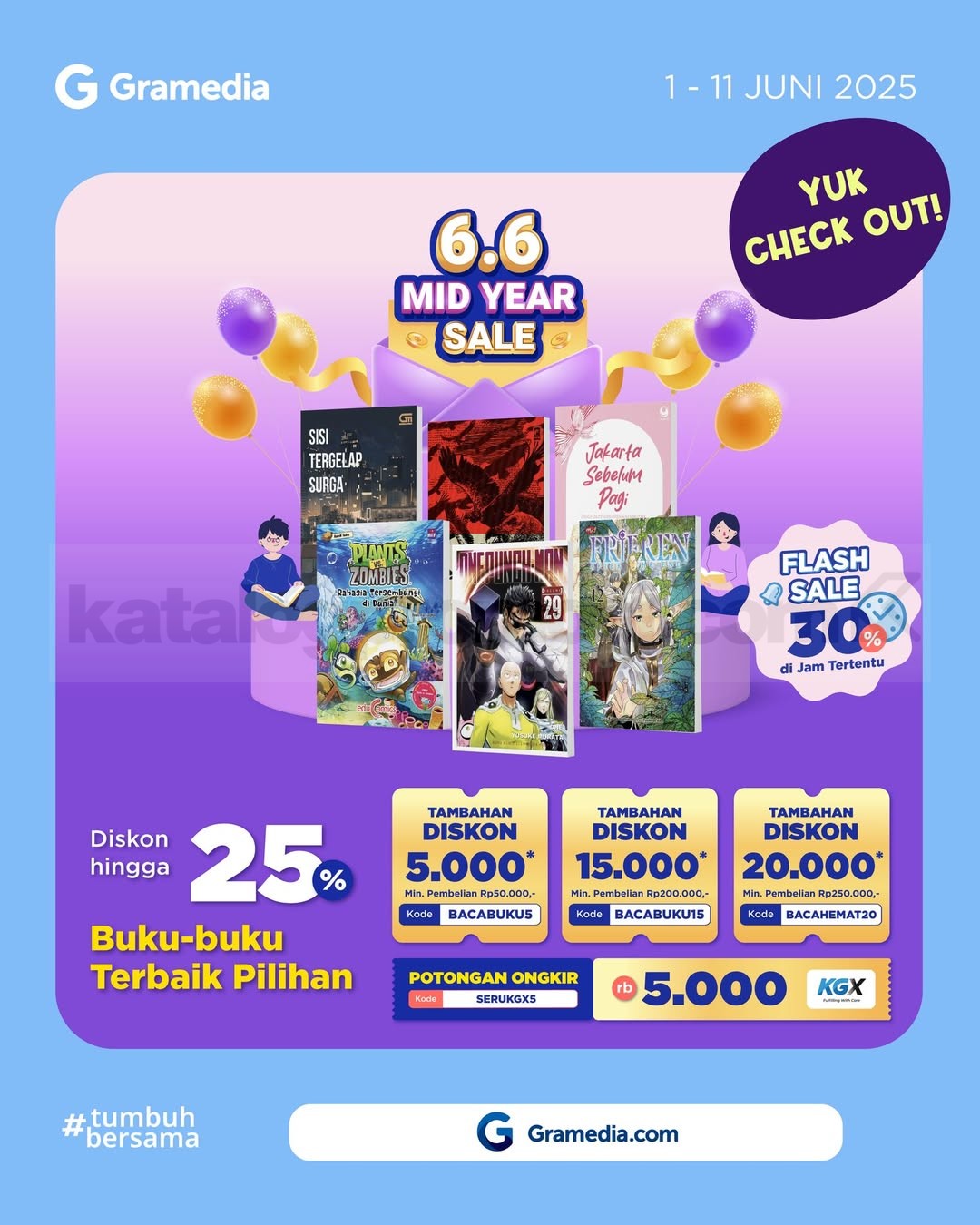 Gramedia 6.6 Mid Year Sale DISKON HINGGA 25% + FLASH SALE 30%.