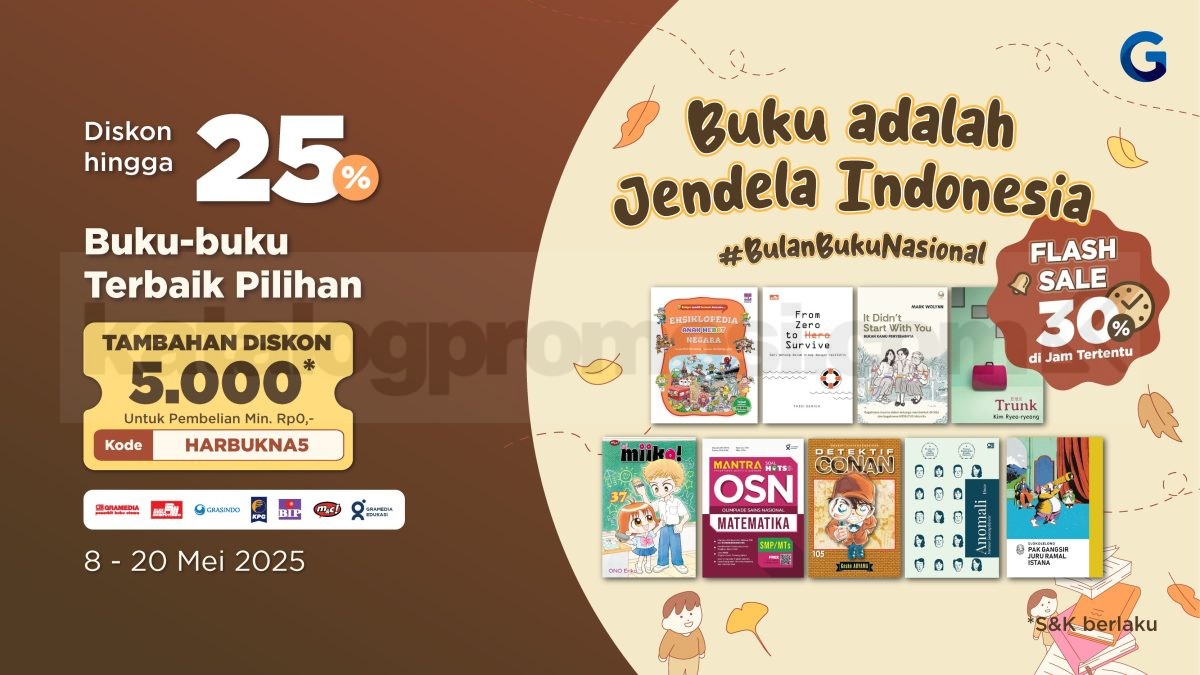 Kabar baik buat kamu yang doyan baca! 🥳 Spesial Bulan Buku Nasional, Gramedia kasih diskon 25% buat deretan buku pilihan terbaik yang wajib banget masuk rak kamu. Masih kurang? Tenang, ada juga flash sale sampai 30% di jam-jam tertentu yang sayang banget kalau dilewatkan! ⏰✨