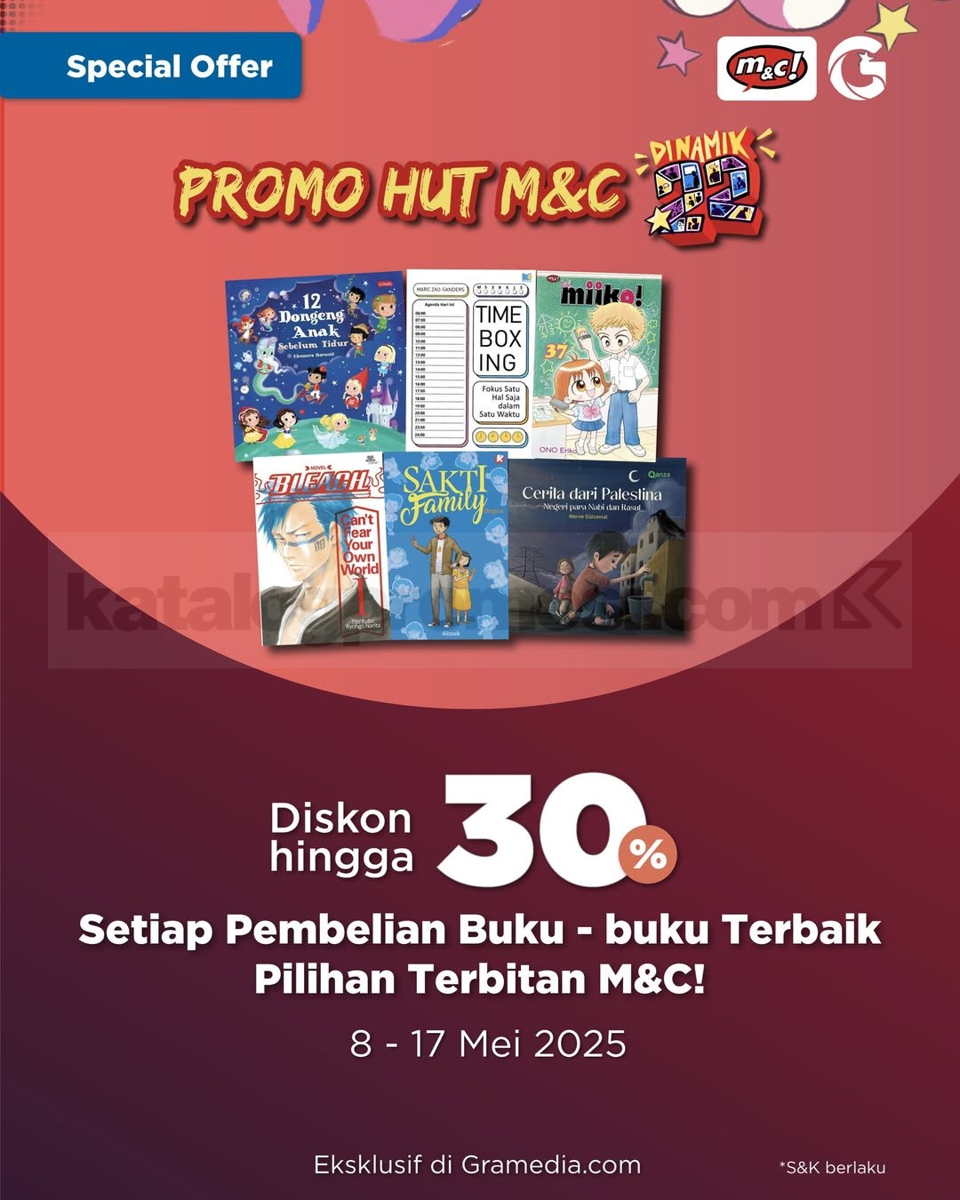 Rayain HUT M&C lebih hemat di Gramedia! Kunjungi Gramedia.com, marketplace, atau Gramedia Digital dan cek promonya sekarang!