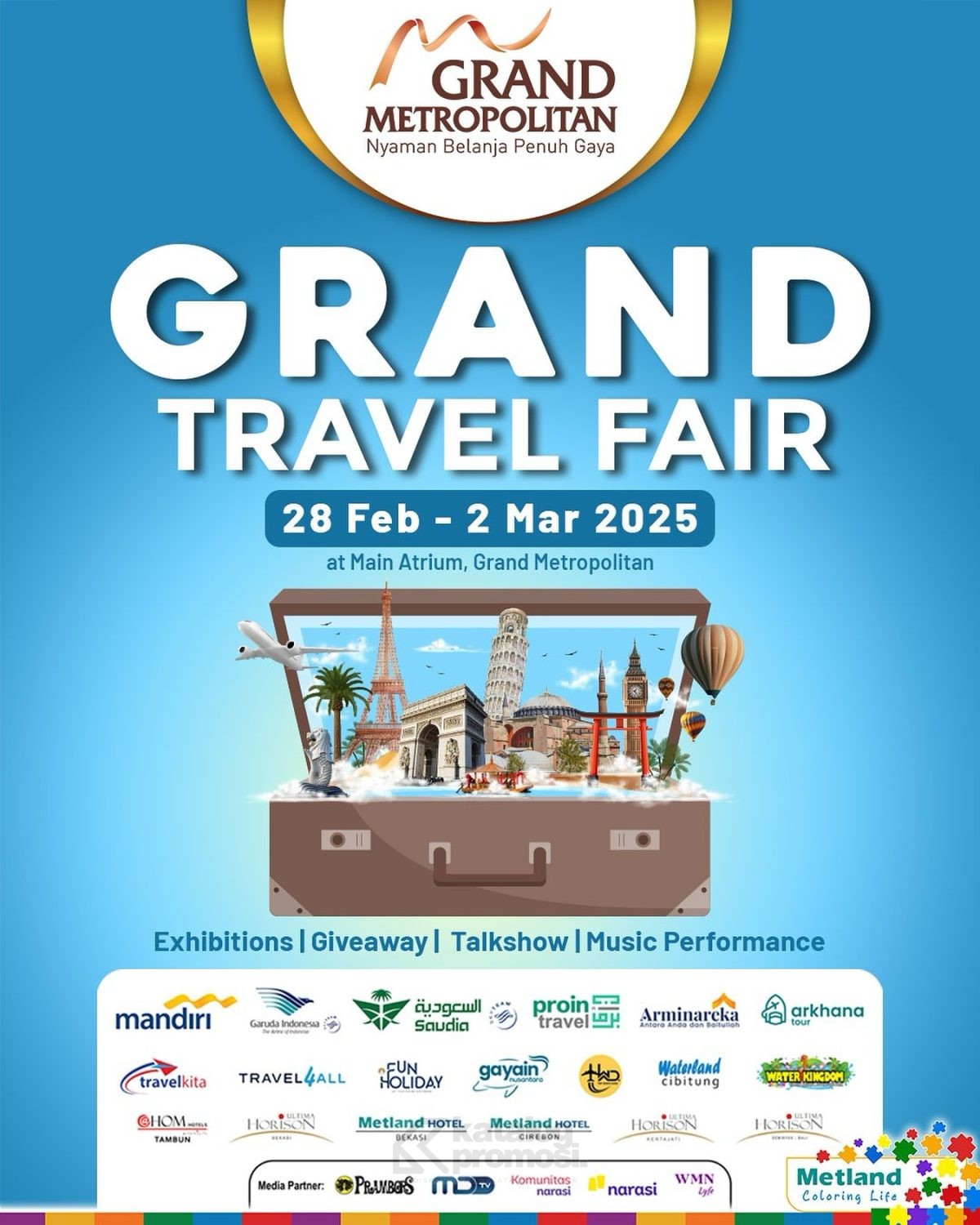 Jangan sampai ketinggalan kesempatan ini! Segera kunjungi Grand Travel Fair 2025 di Grand Metropolitan Bekasi dan dapatkan promo terbaik untuk liburan impianmu! βοΈπ