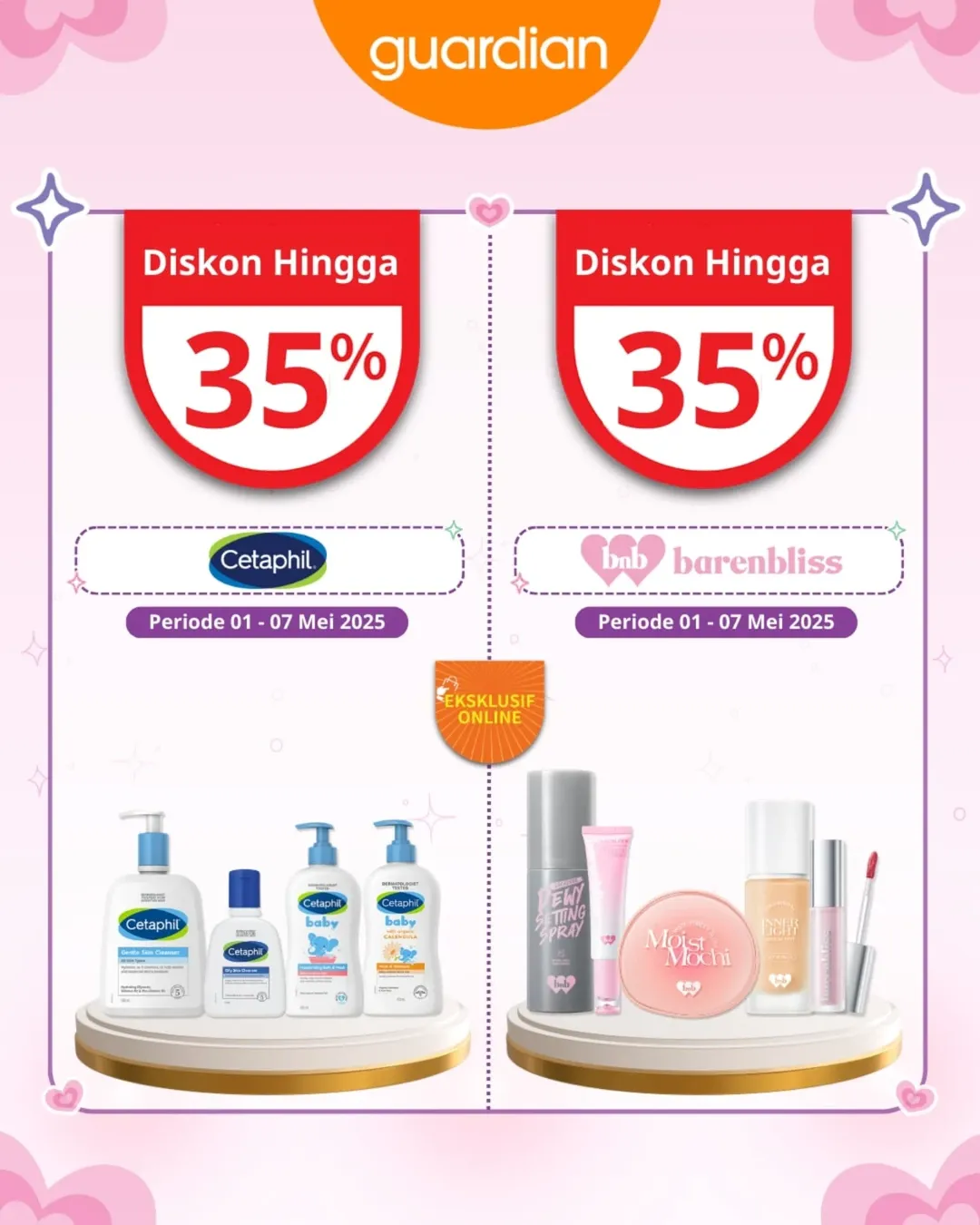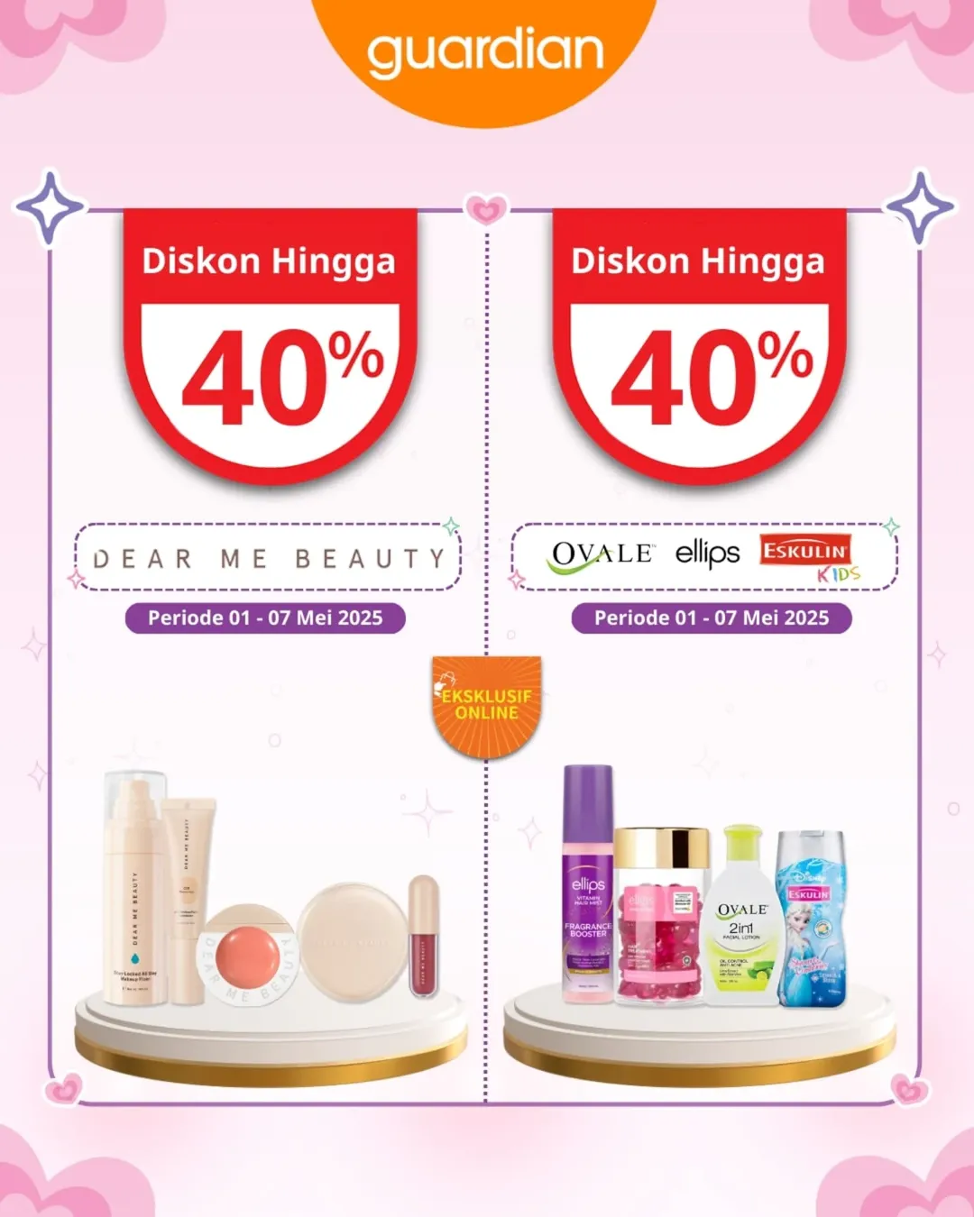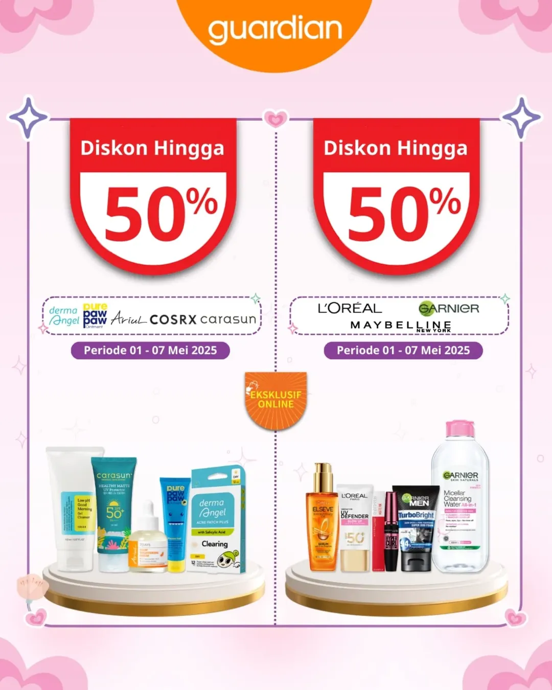 Bulan Mei dimulai dengan kejutan seru dari Guardian! Siap bikin wishlist skincare dan daily essentials kamu jadi lebih hemat 💸. Mulai dari diskon sampai 55%, extra voucher spesial, sampai hadiah gratis. Semuanya bisa kamu dapetin hanya di periode terbatas, lho! ✨