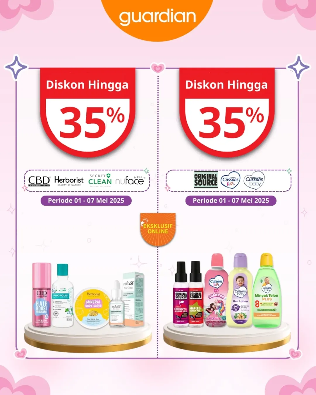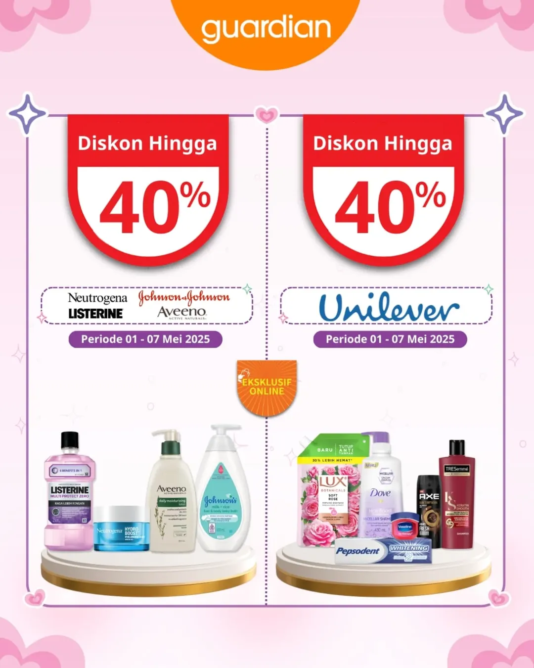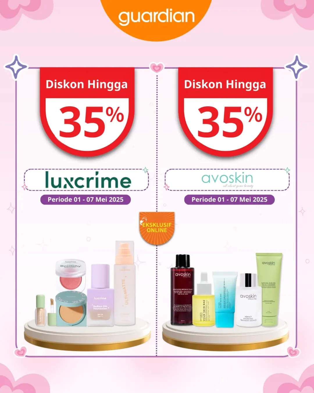 Bulan Mei dimulai dengan kejutan seru dari Guardian! Siap bikin wishlist skincare dan daily essentials kamu jadi lebih hemat 💸. Mulai dari diskon sampai 55%, extra voucher spesial, sampai hadiah gratis. Semuanya bisa kamu dapetin hanya di periode terbatas, lho! ✨