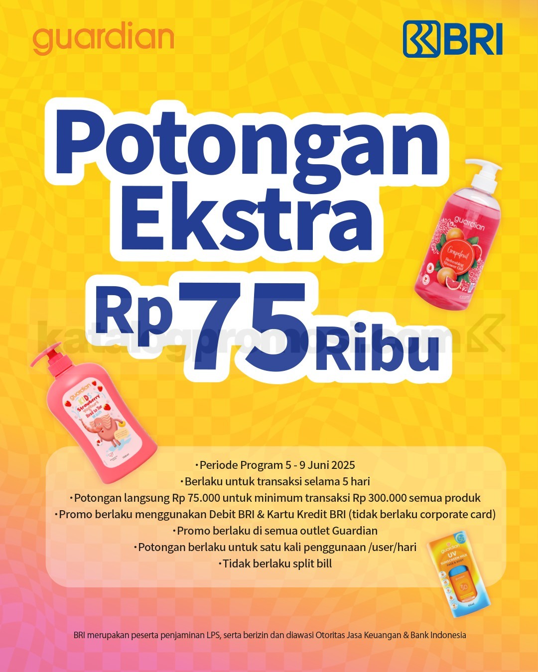 Dari sunscreen, sabun, shampoo, sampai lipstick kece, semuanya ikutan turun harga! ✨ Dan yang paling ngasih bonus: kalau kamu bayar pakai kartu debit atau kredit BRI, kamu bisa dapetin potongan ekstra Rp75 ribu loh! 😍