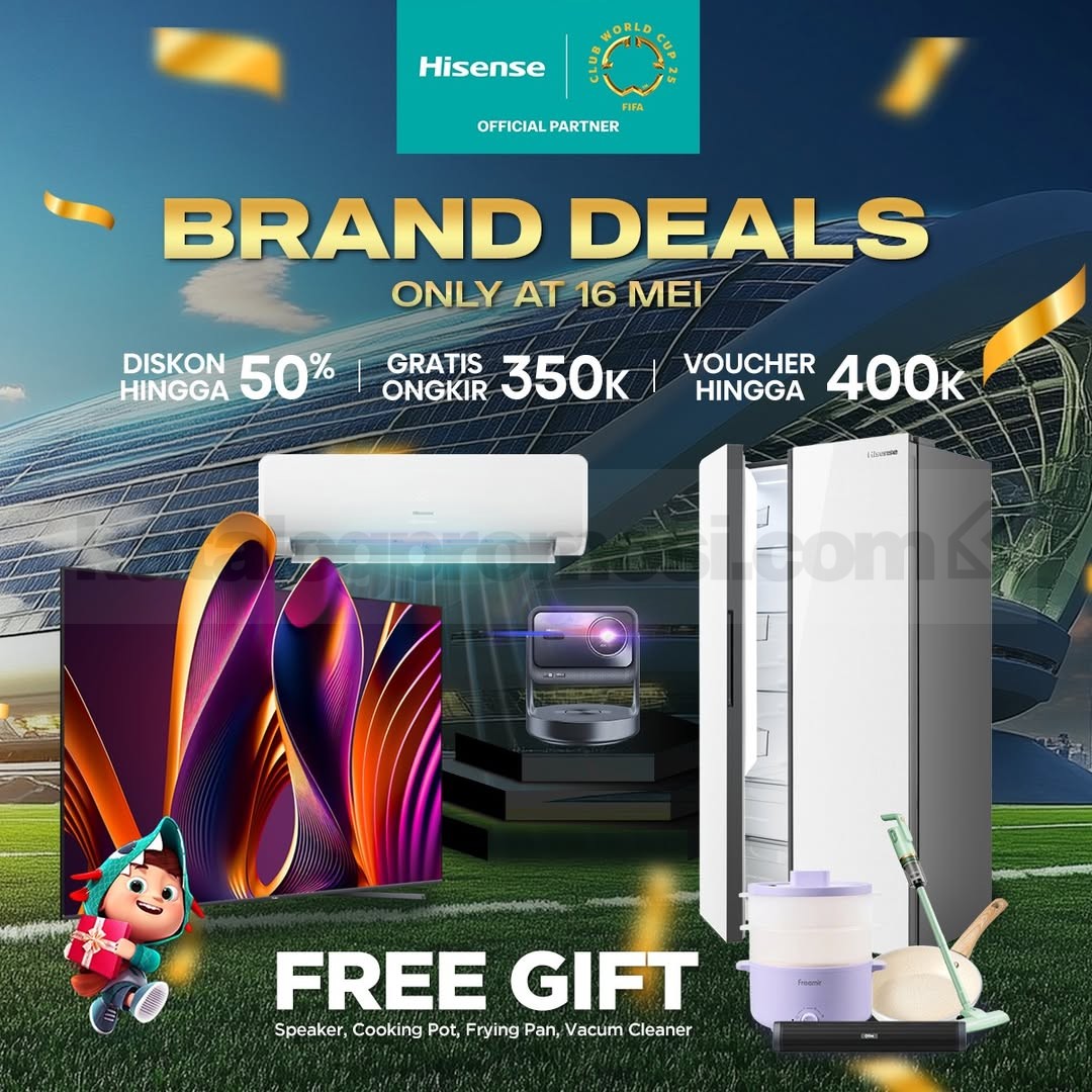 🔥 Deal terbaik dari Hisense cuma sehari! Diskon sampai 50%, voucher belanja 400 ribu, dan subsidi ongkir hingga Rp350 ribu cuma ada di Hisense Brand Deals Shopee, khusus hari ini, 16 Mei 2025. Langsung dari Hisense Official Store Shopee, promo ini cocok buat kamu yang lagi incar TV dan elektronik rumah tangga.