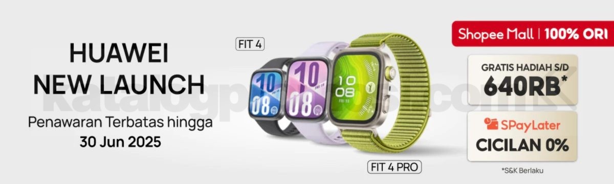 Good news buat kamu yang nunggu-nunggu Huawei New Launch! Sekarang waktunya upgrade gaya hidup bareng Huawei Watch Fit 4 Series, yang lagi promo spesial di Shopee. Bukan cuma tampilannya yang keren dan fiturnya lengkap, kamu juga bisa dapetin bonus hadiah sampai Rp640 ribu π dan cicilan 0% pakai SPayLater π³.