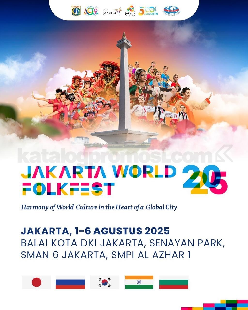 Jakarta World Folklore Festival 2025 di Senayan Park & Bundaran HI berlangsung 1–6 Agustus 2025! Saksikan parade budaya internasional, penampilan seni dari Rusia, Korea Selatan, India, Jepang & Bulgaria di berbagai lokasi ikonik Jakarta.