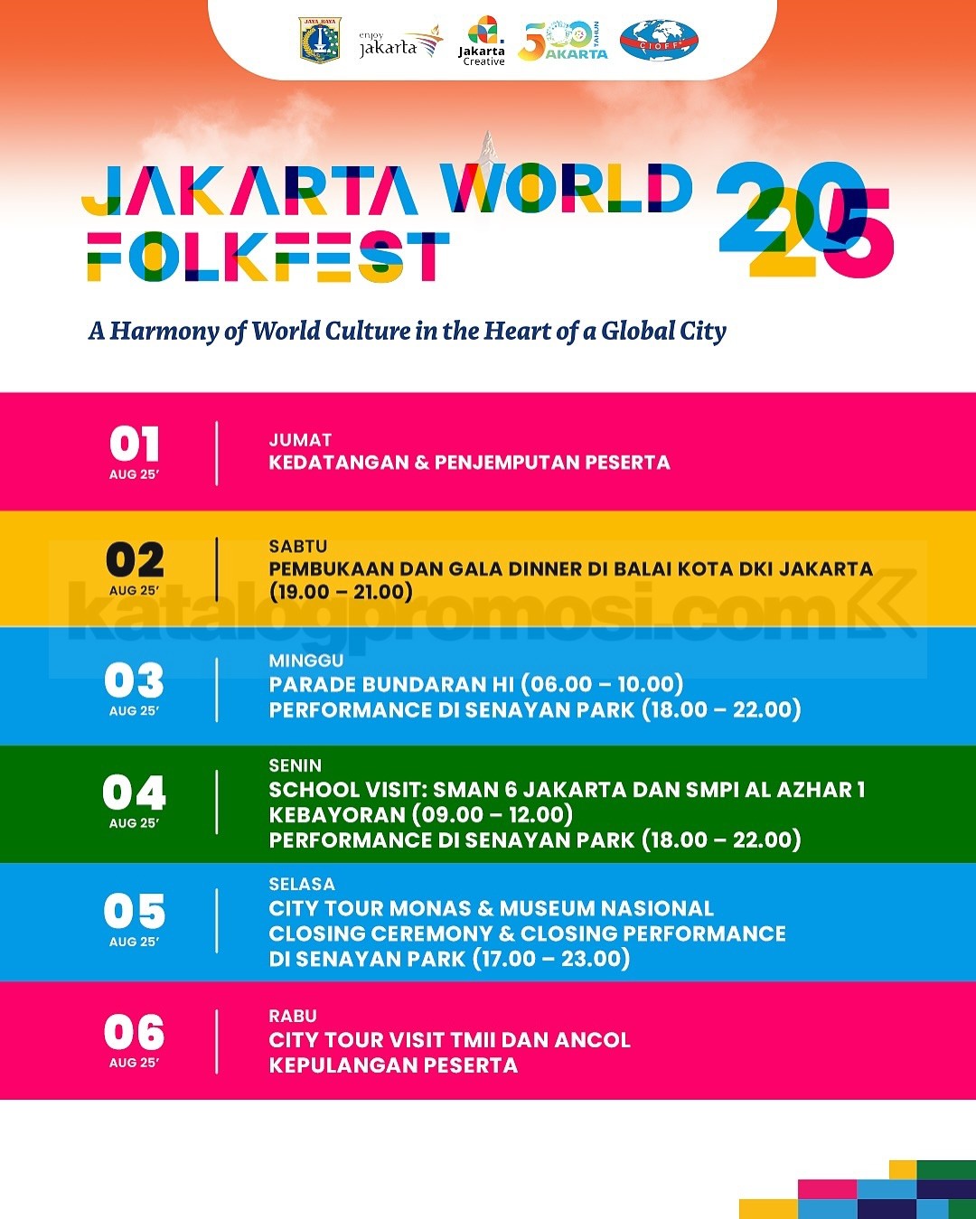 👉 Cek gambar Jakarta World Folklore Festival 2025 di bawah ini untuk lihat rundown harian, lokasi acara, dan highlight peserta internasional!