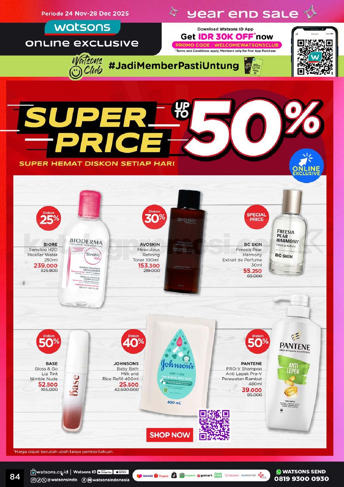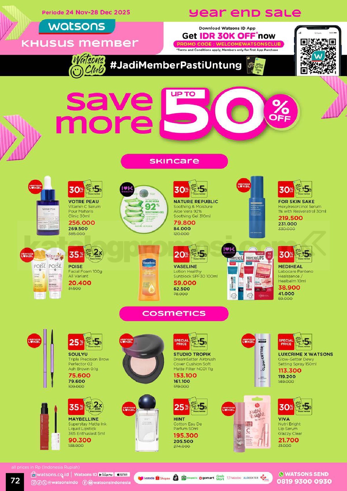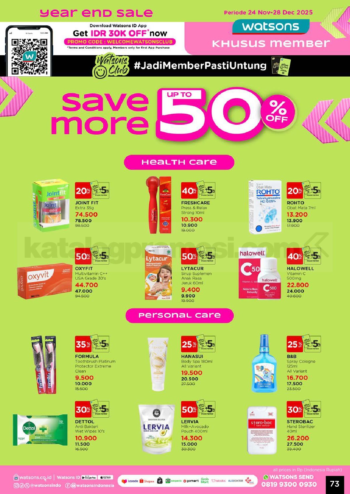 Katalog Belanja Watsons Terbaru YEAR END SALE DISKON HINGGA 50% berlaku tanggal 24 November – 28 Desember 2025
