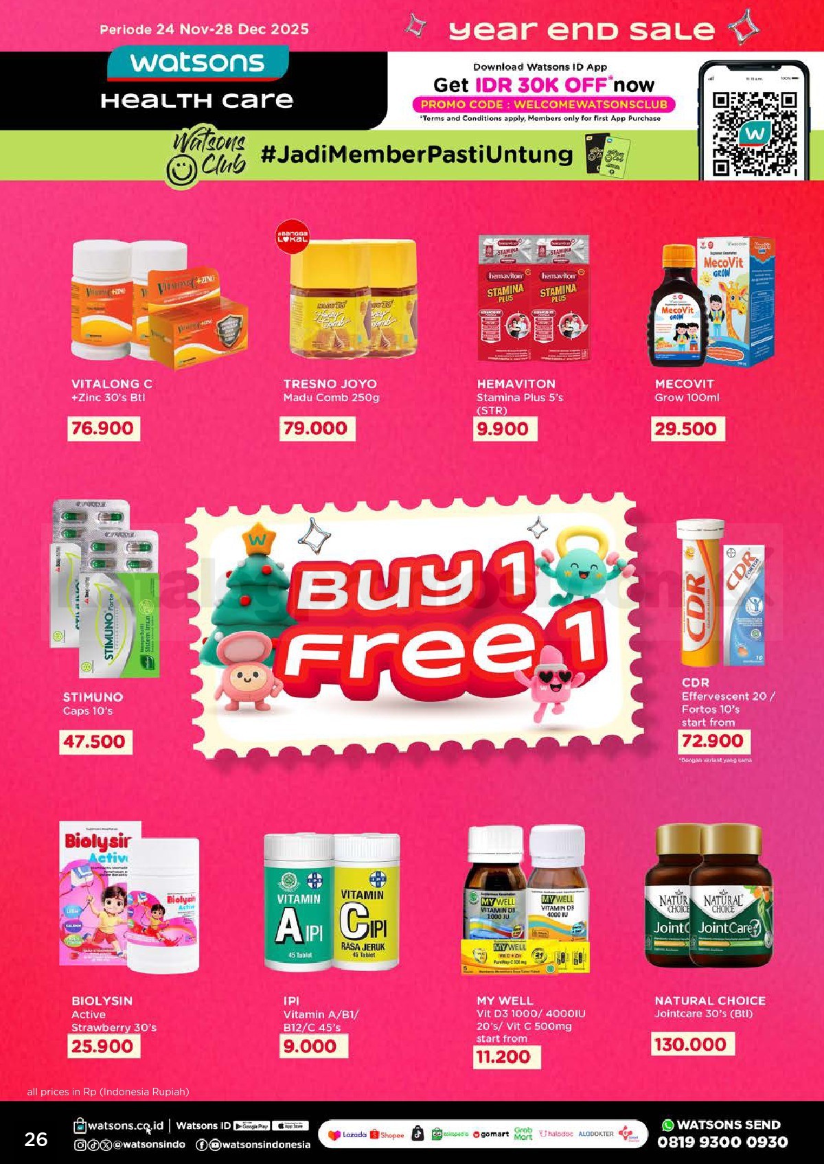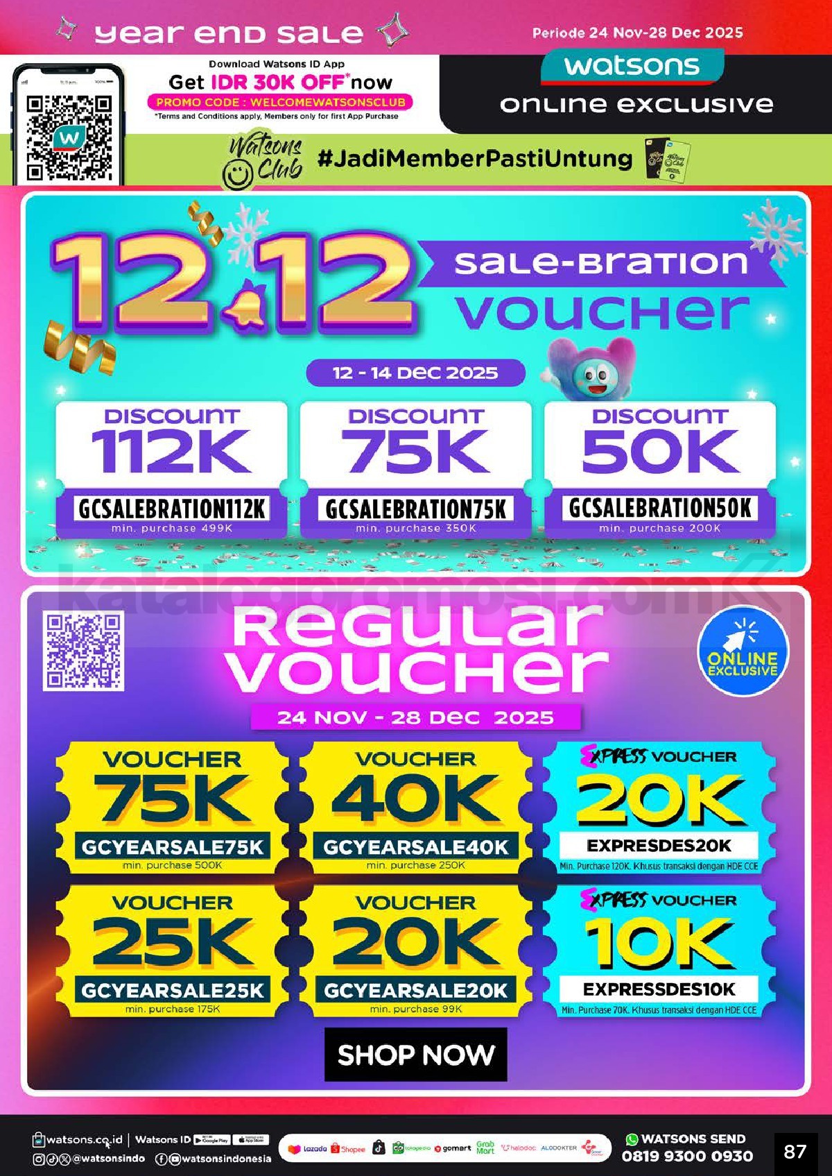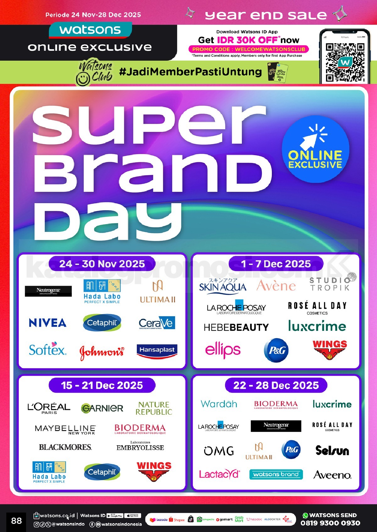 Katalog Belanja Watsons Terbaru YEAR END SALE DISKON HINGGA 50% berlaku tanggal 24 November – 28 Desember 2025