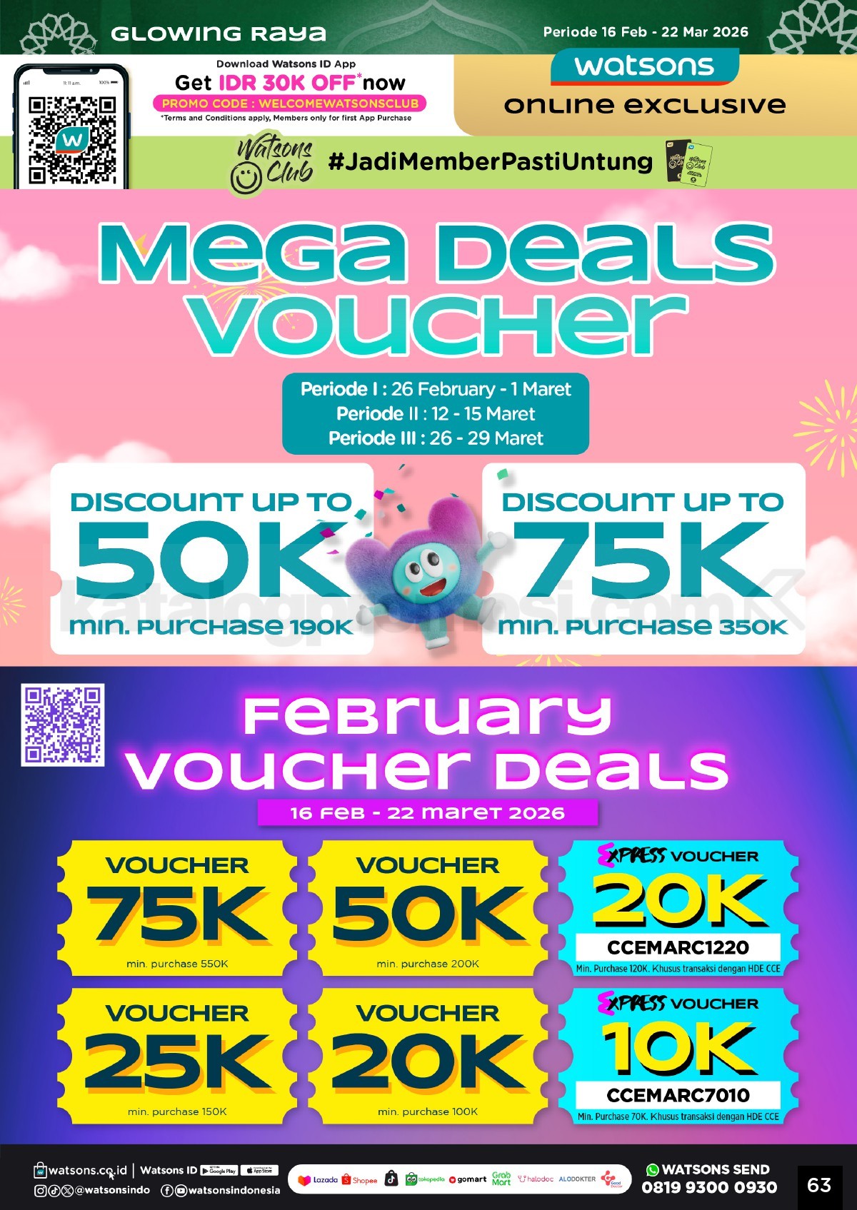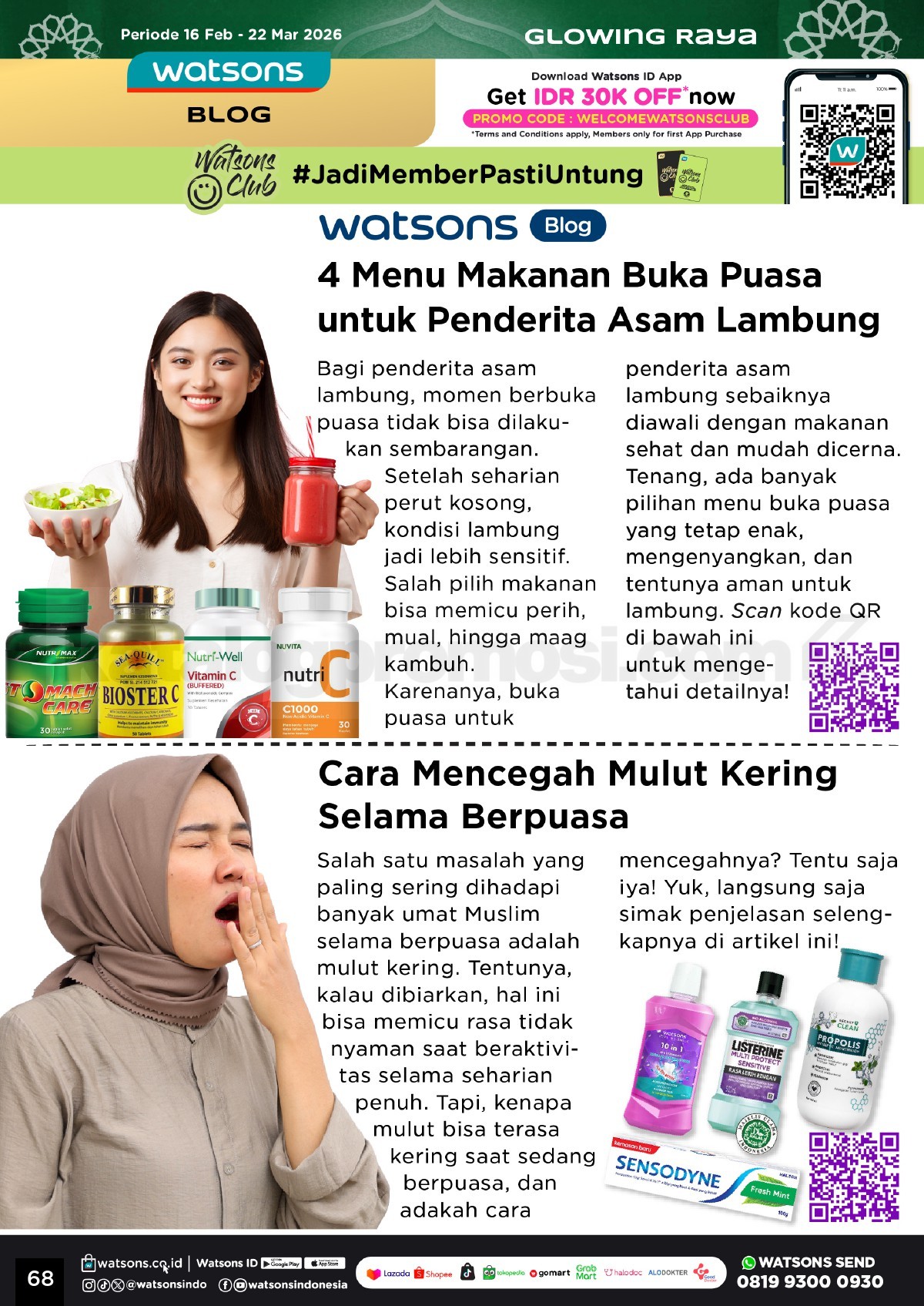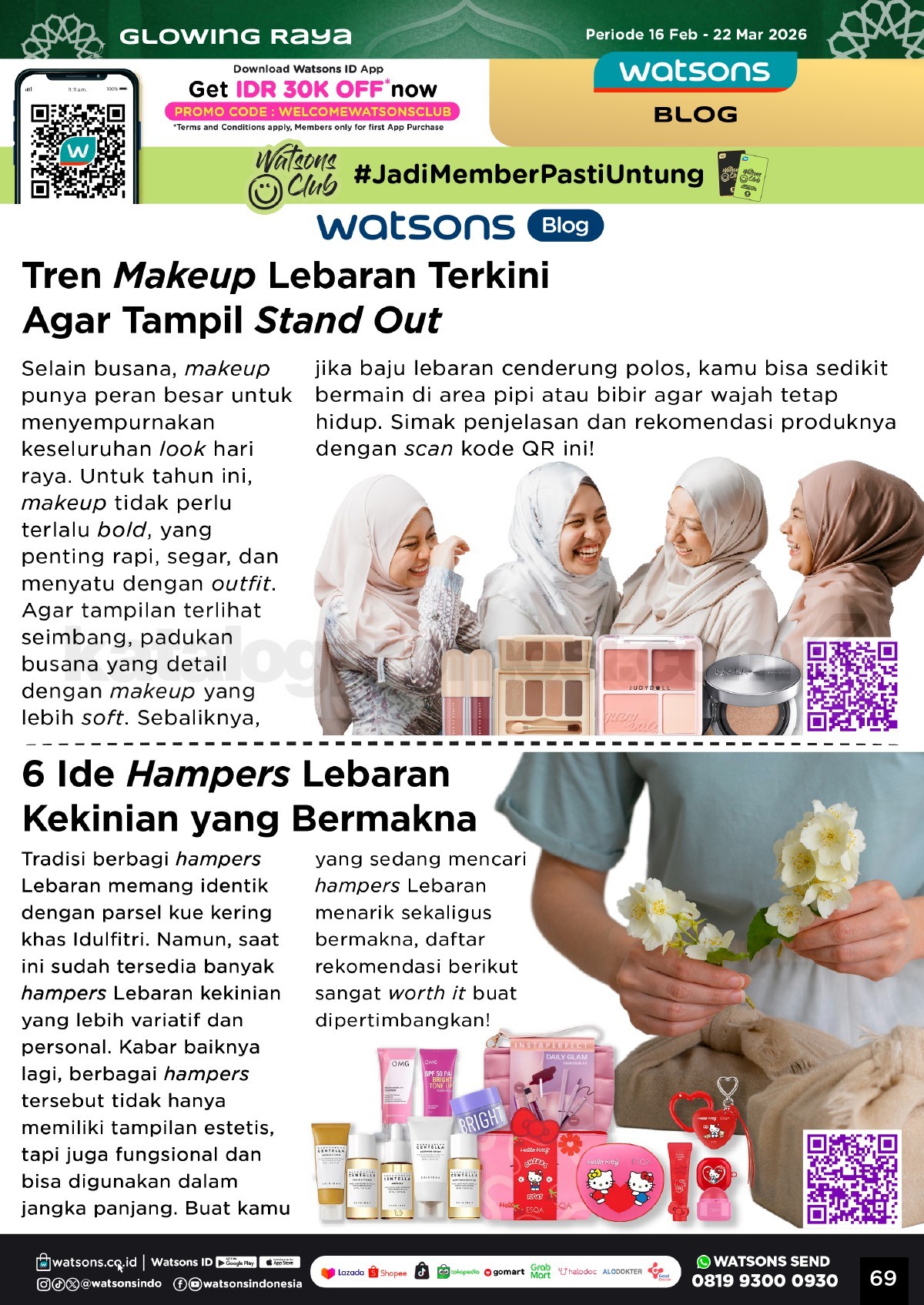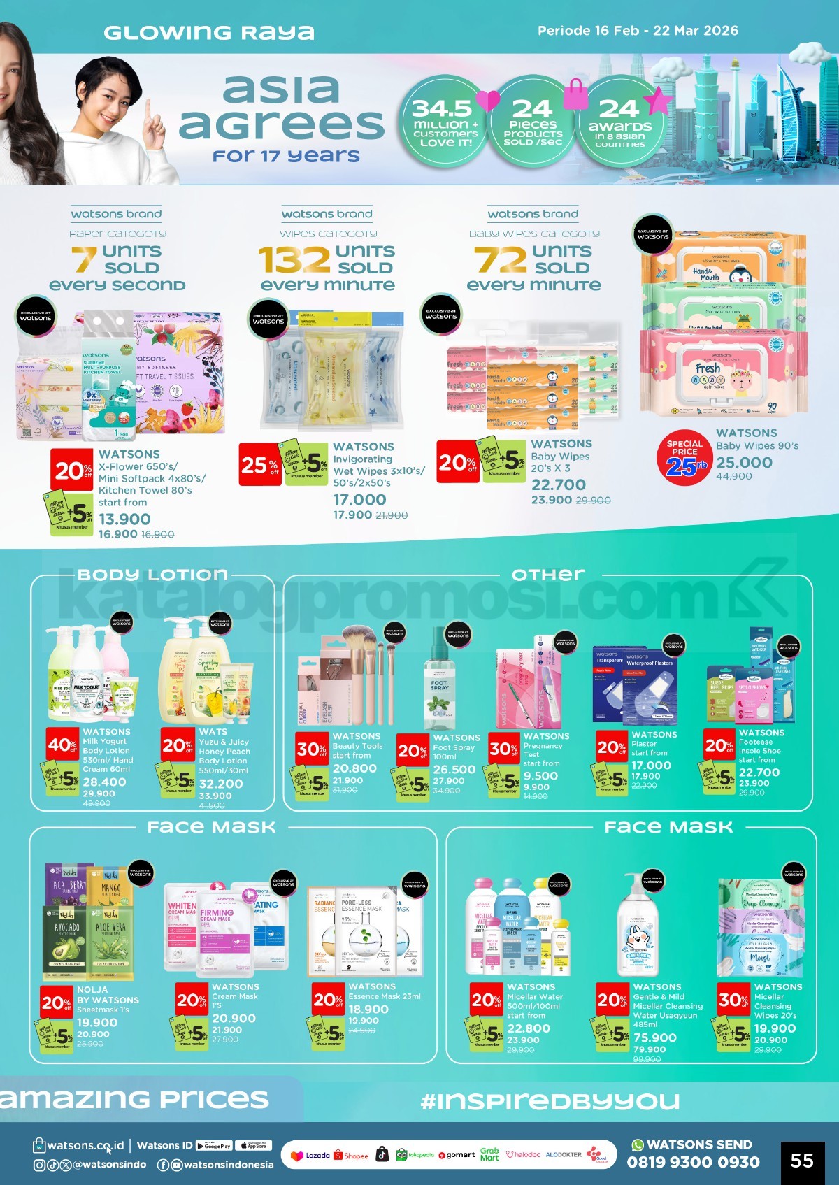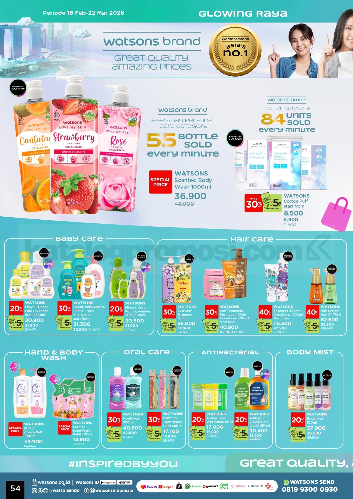 Katalog Belanja Watsons Terbaru GLOWING RAYA Diskon HINGGA 50% berlaku tanggal 16 Februari – 22 Maret 2026