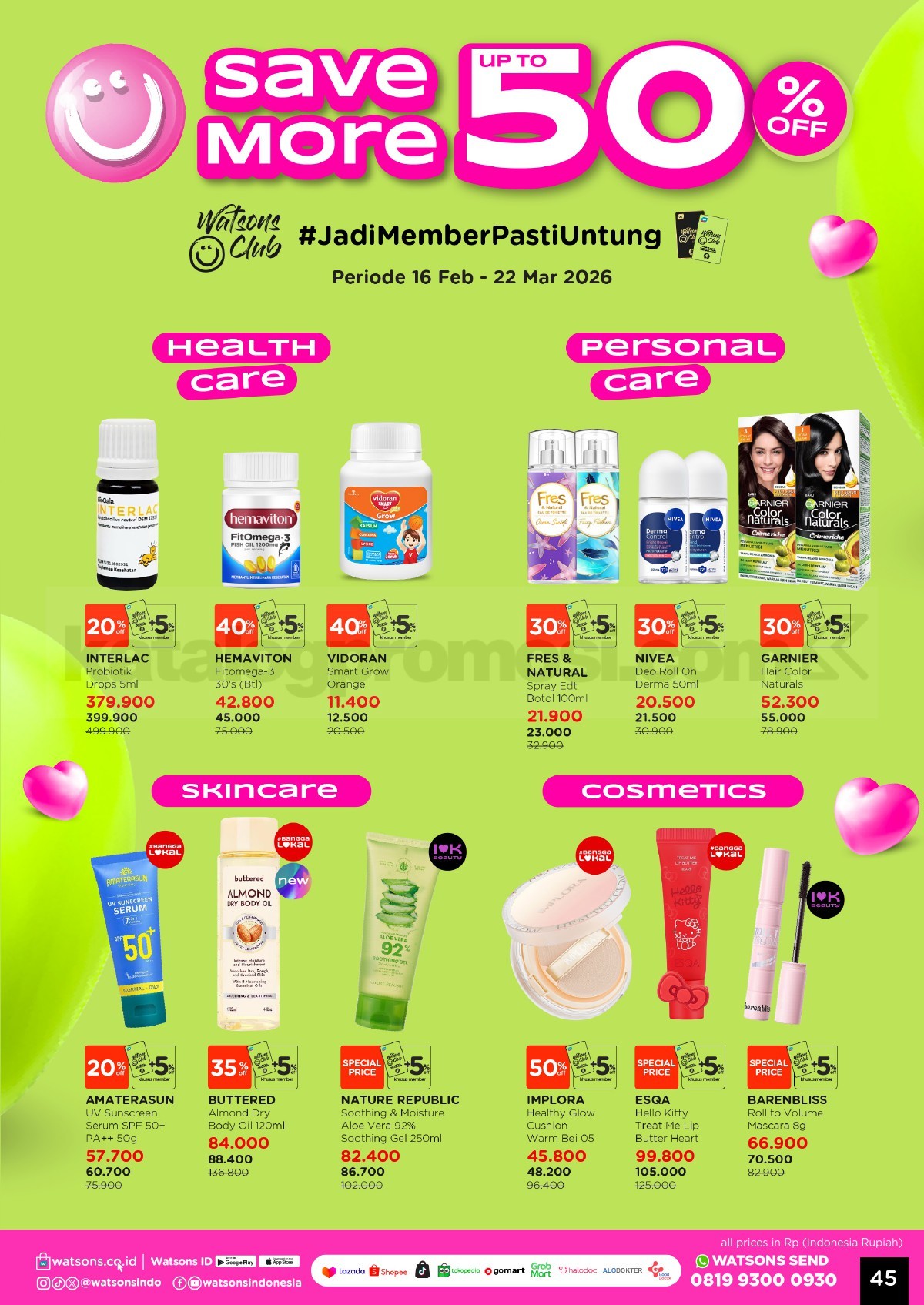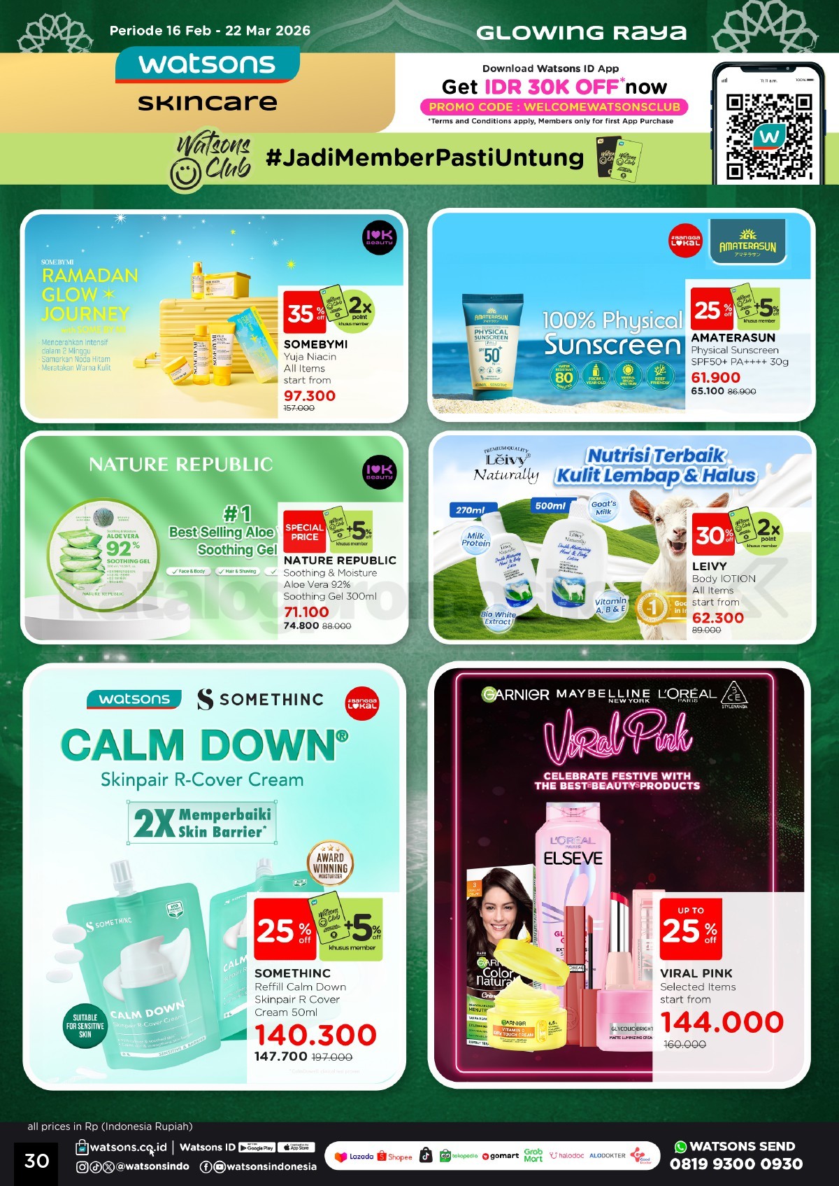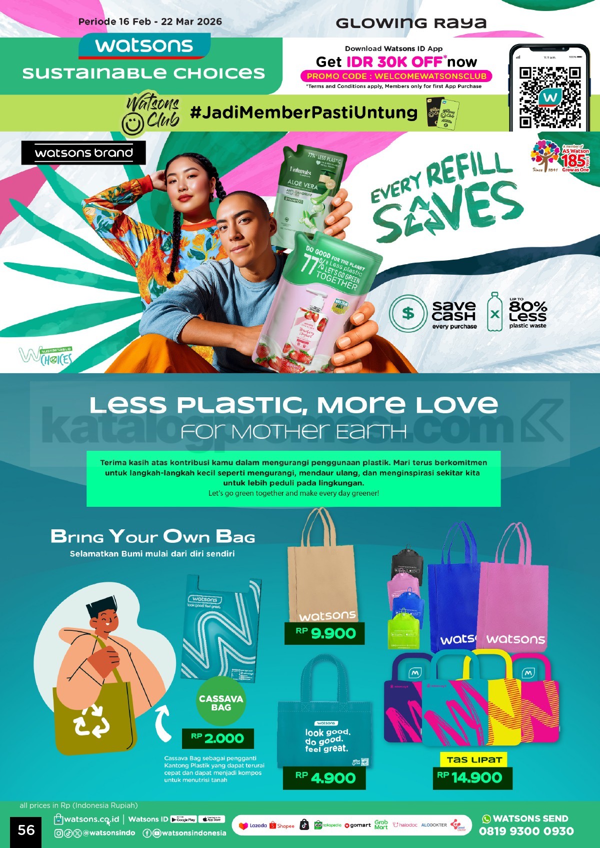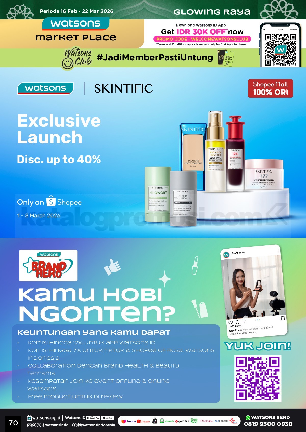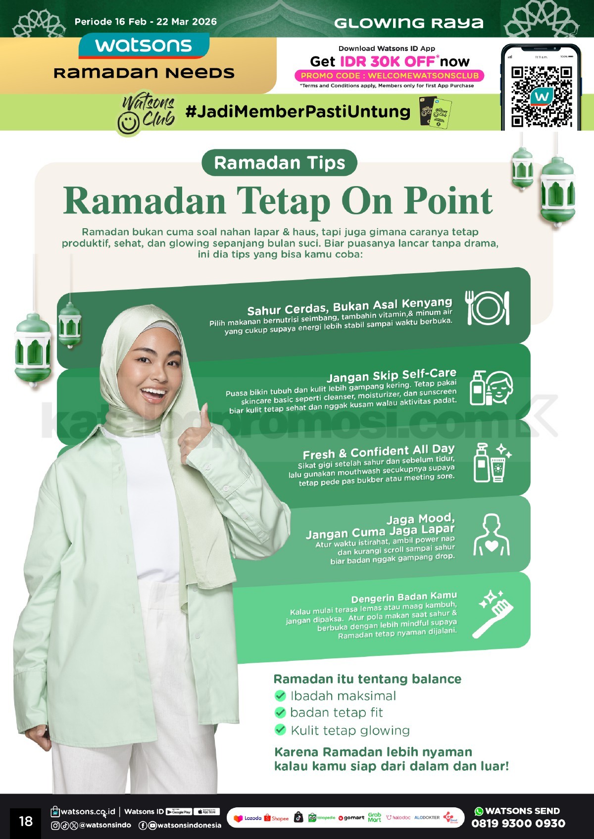 Katalog Belanja Watsons Terbaru GLOWING RAYA Diskon HINGGA 50% berlaku tanggal 16 Februari – 22 Maret 2026