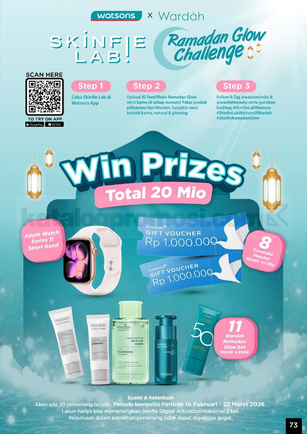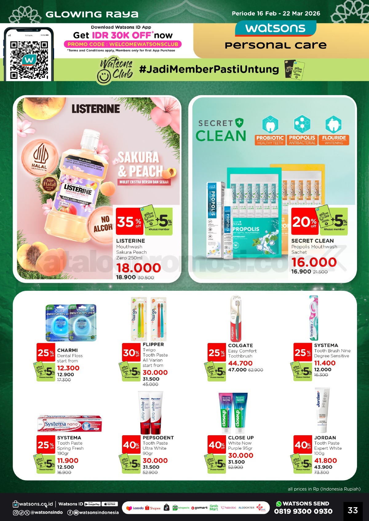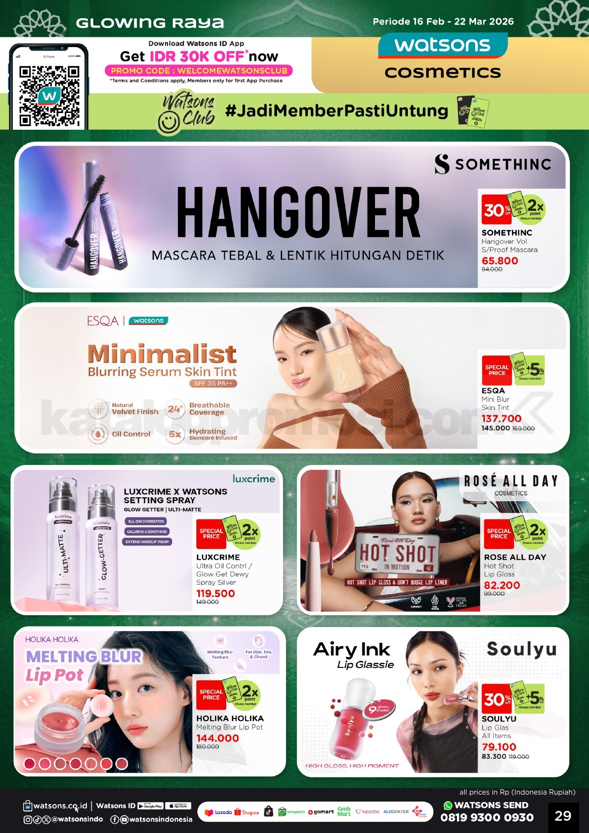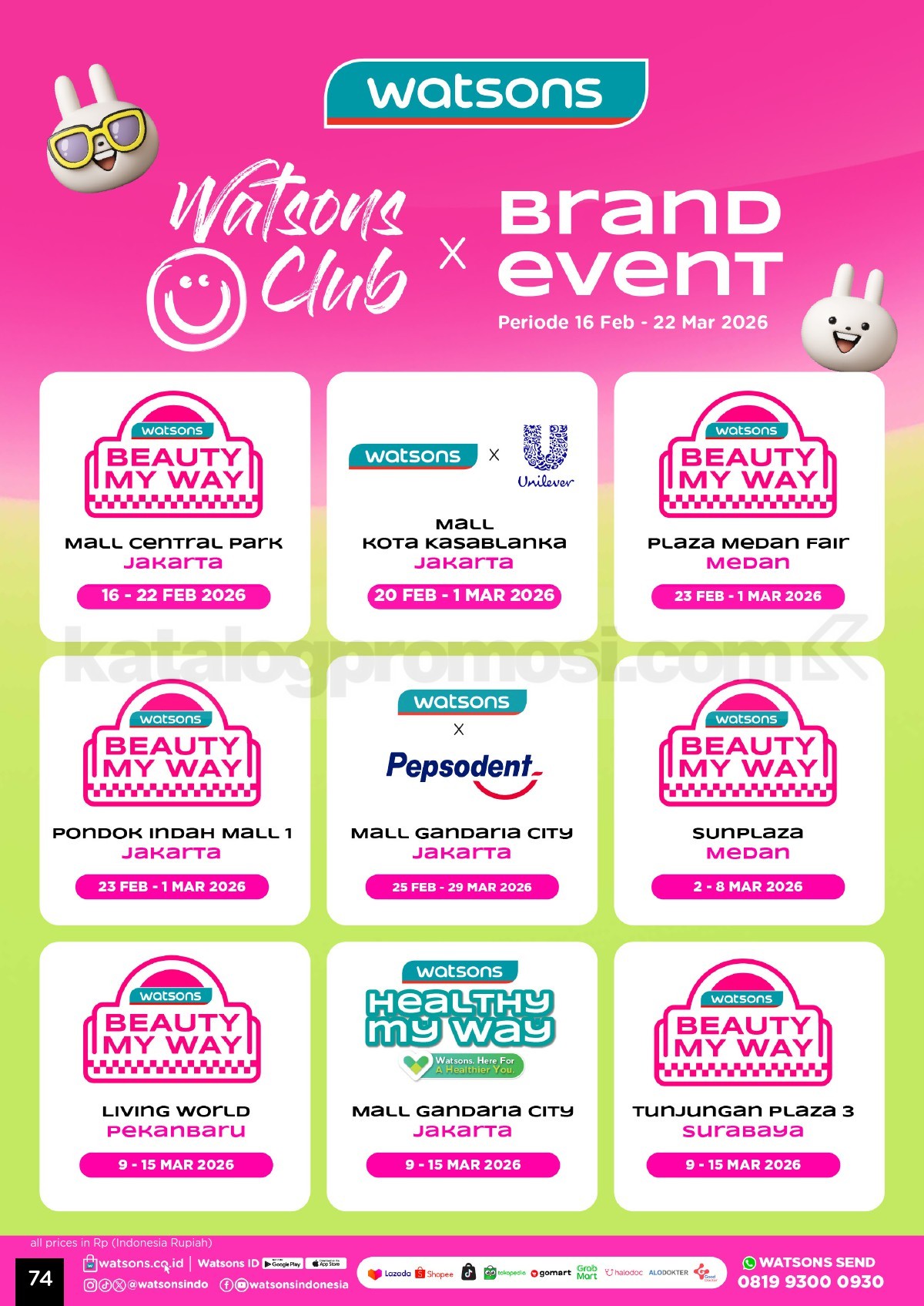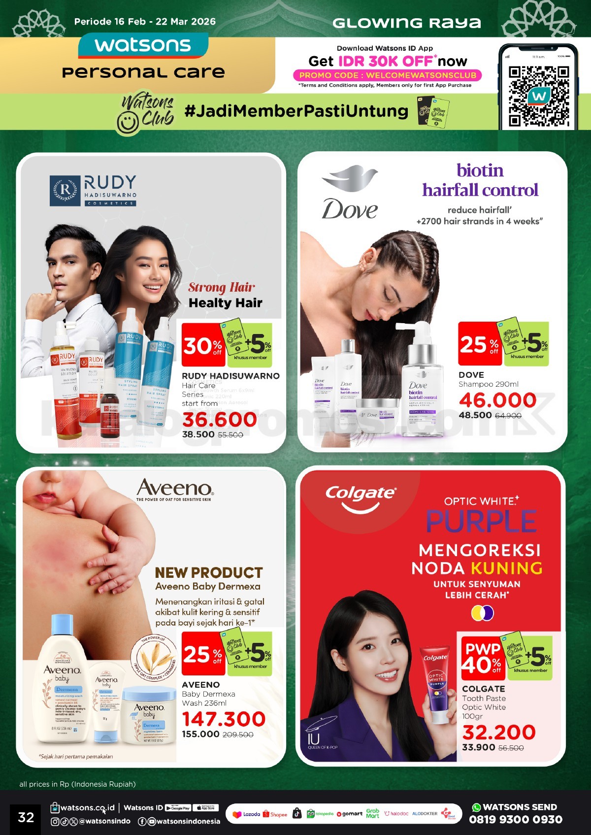 Katalog Belanja Watsons Terbaru GLOWING RAYA Diskon HINGGA 50% berlaku tanggal 16 Februari – 22 Maret 2026