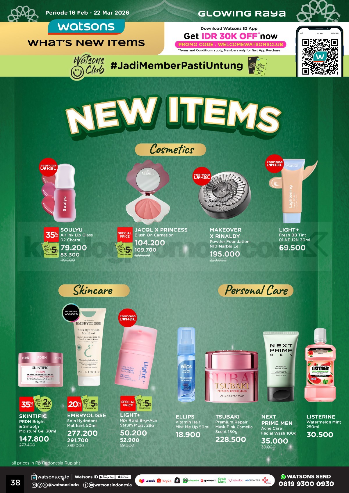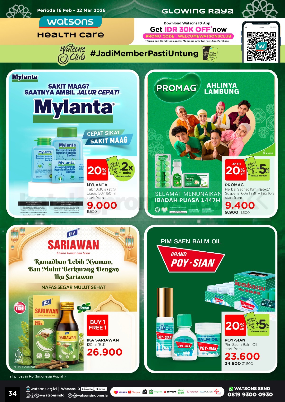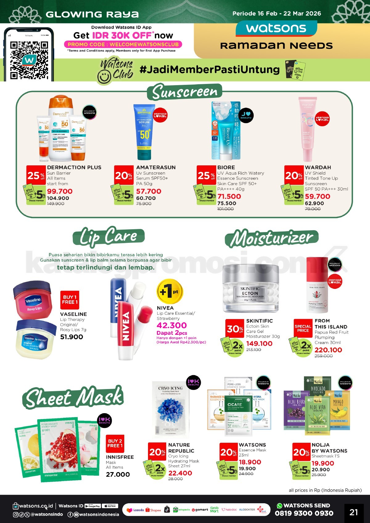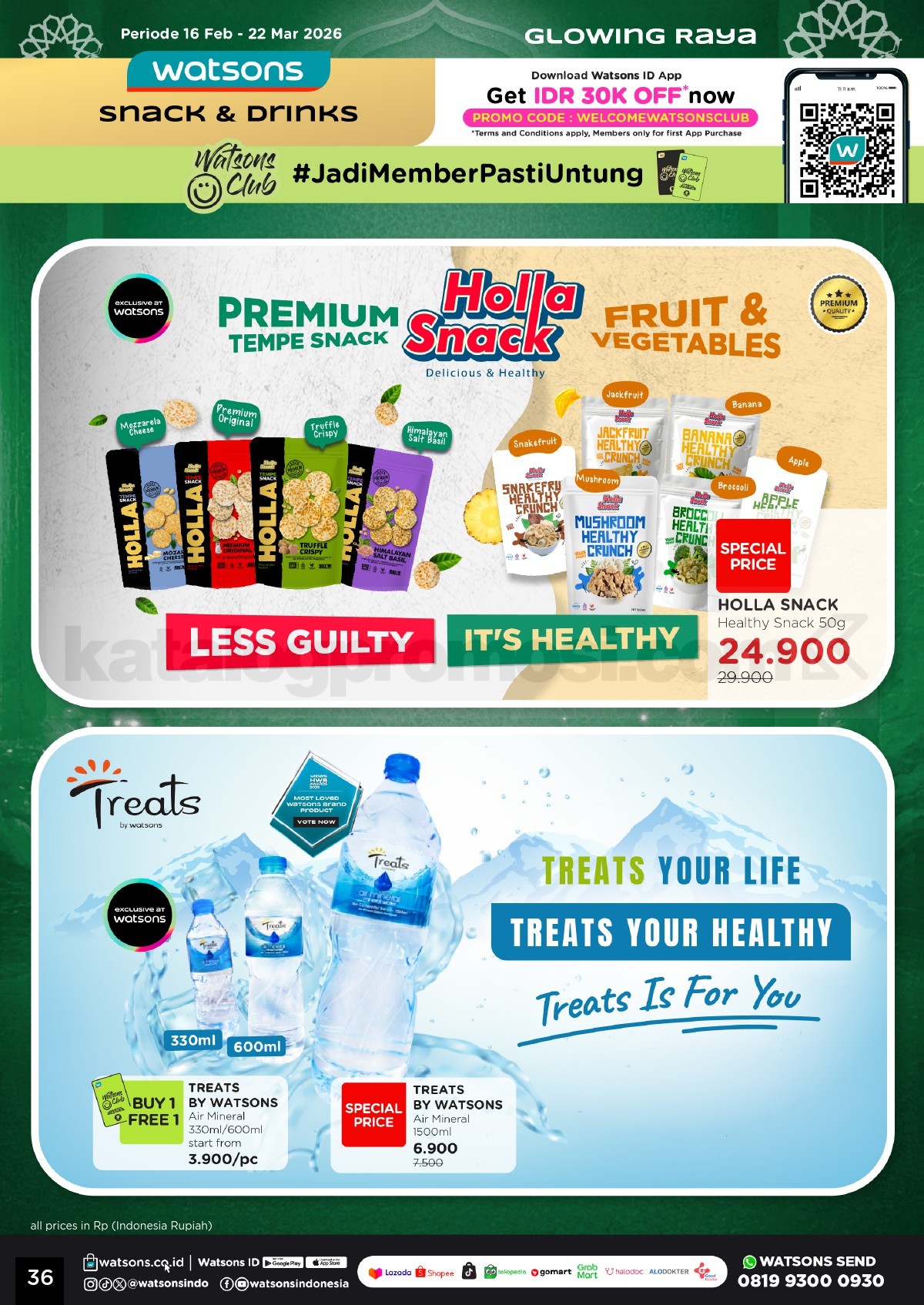Katalog Belanja Watsons Terbaru GLOWING RAYA Diskon HINGGA 50% berlaku tanggal 16 Februari – 22 Maret 2026