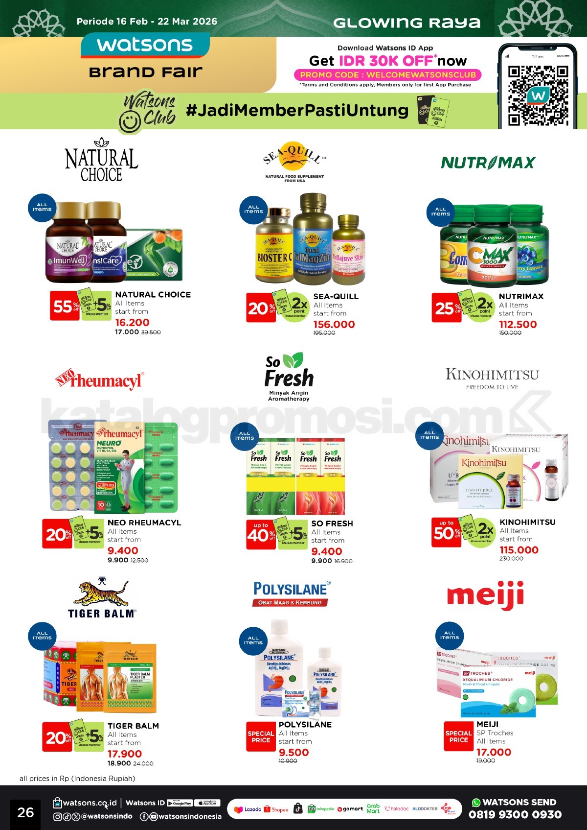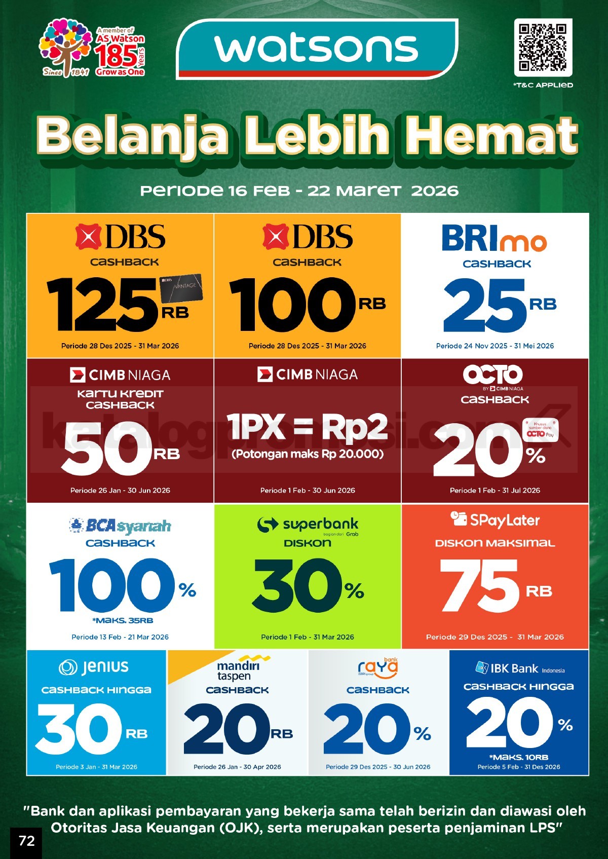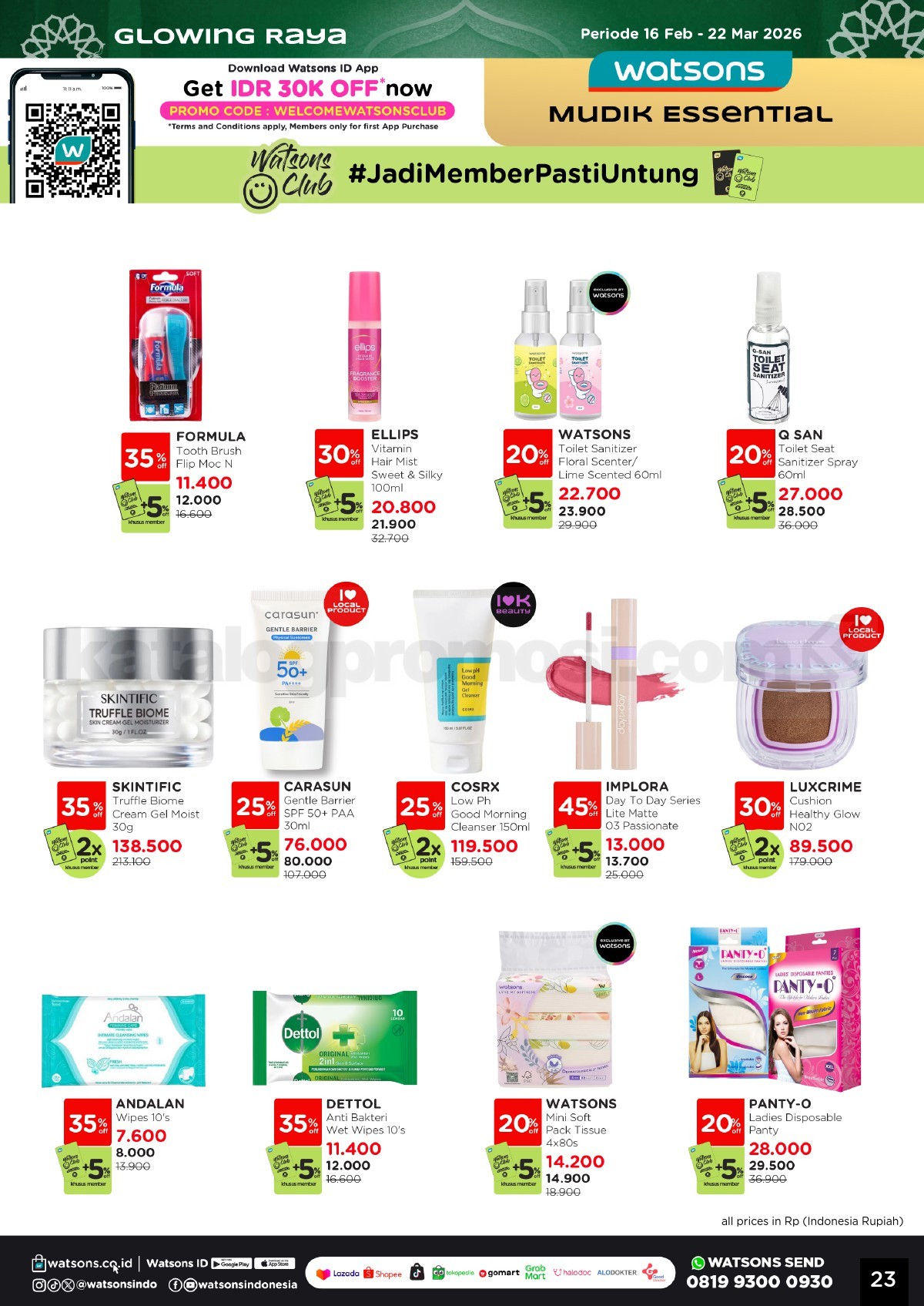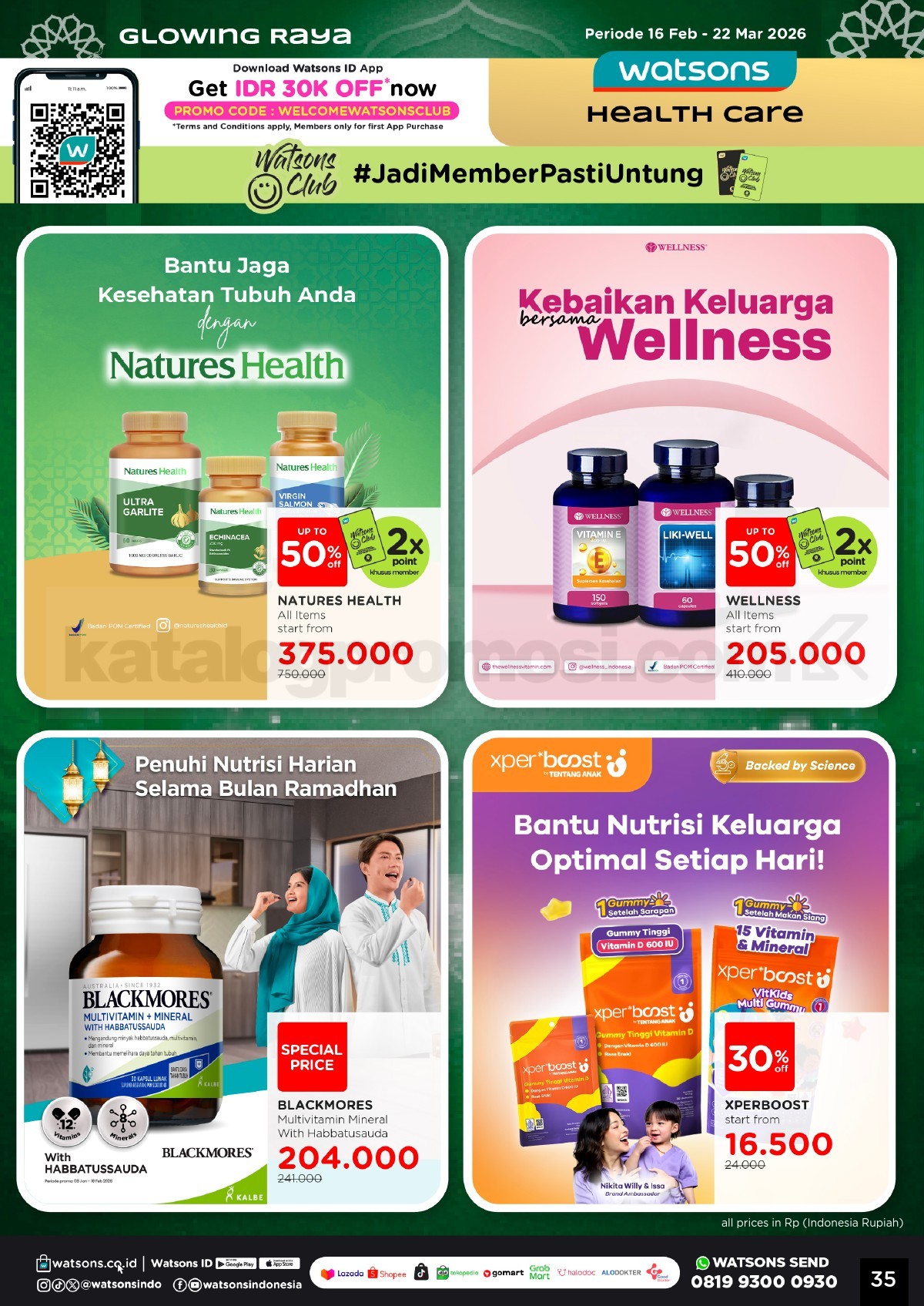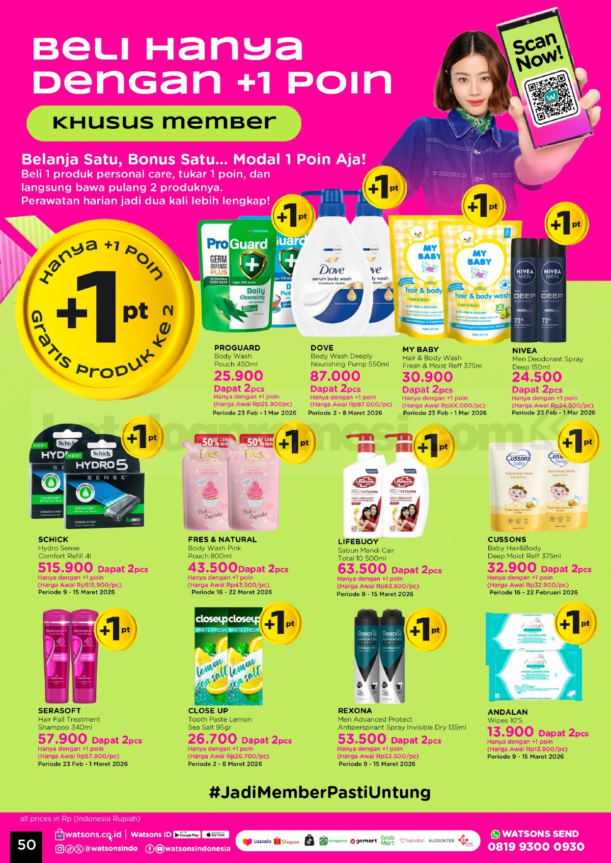 Katalog Belanja Watsons Terbaru GLOWING RAYA Diskon HINGGA 50% berlaku tanggal 16 Februari – 22 Maret 2026