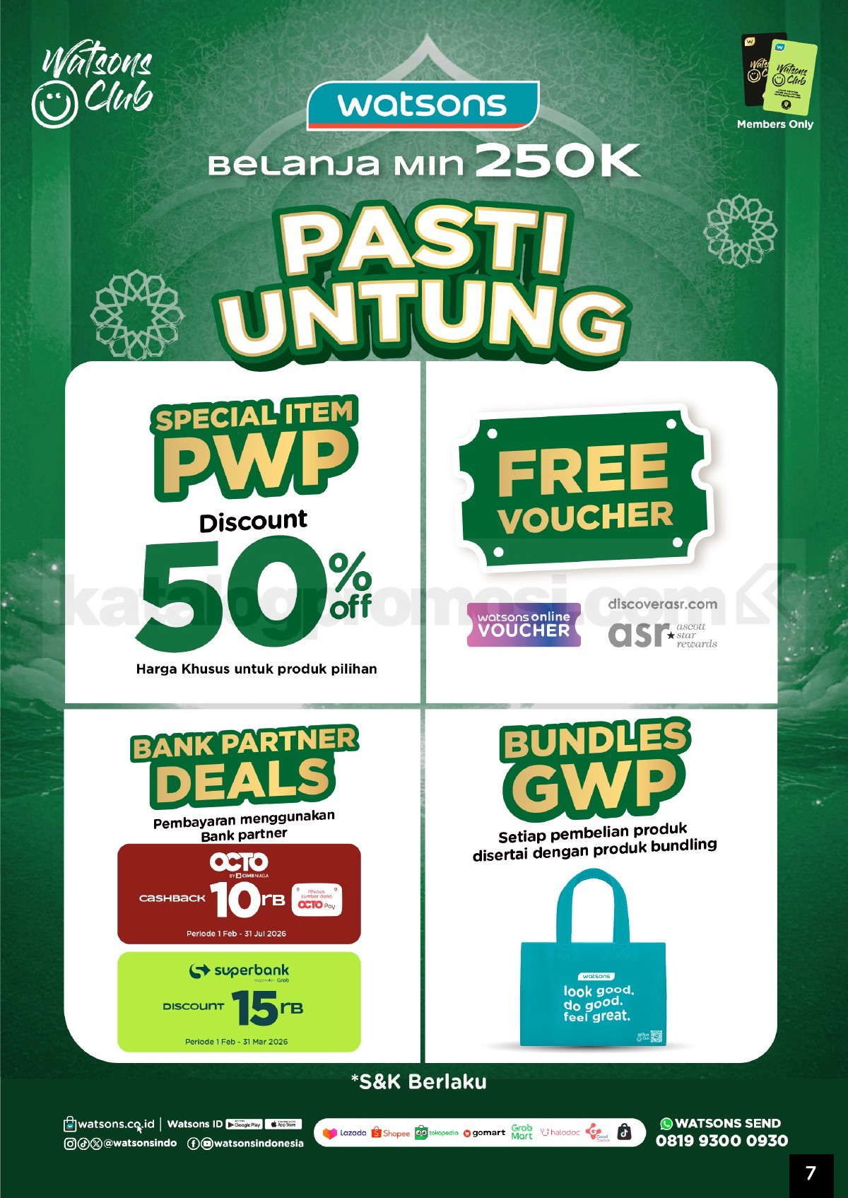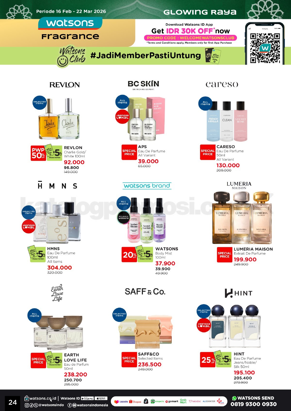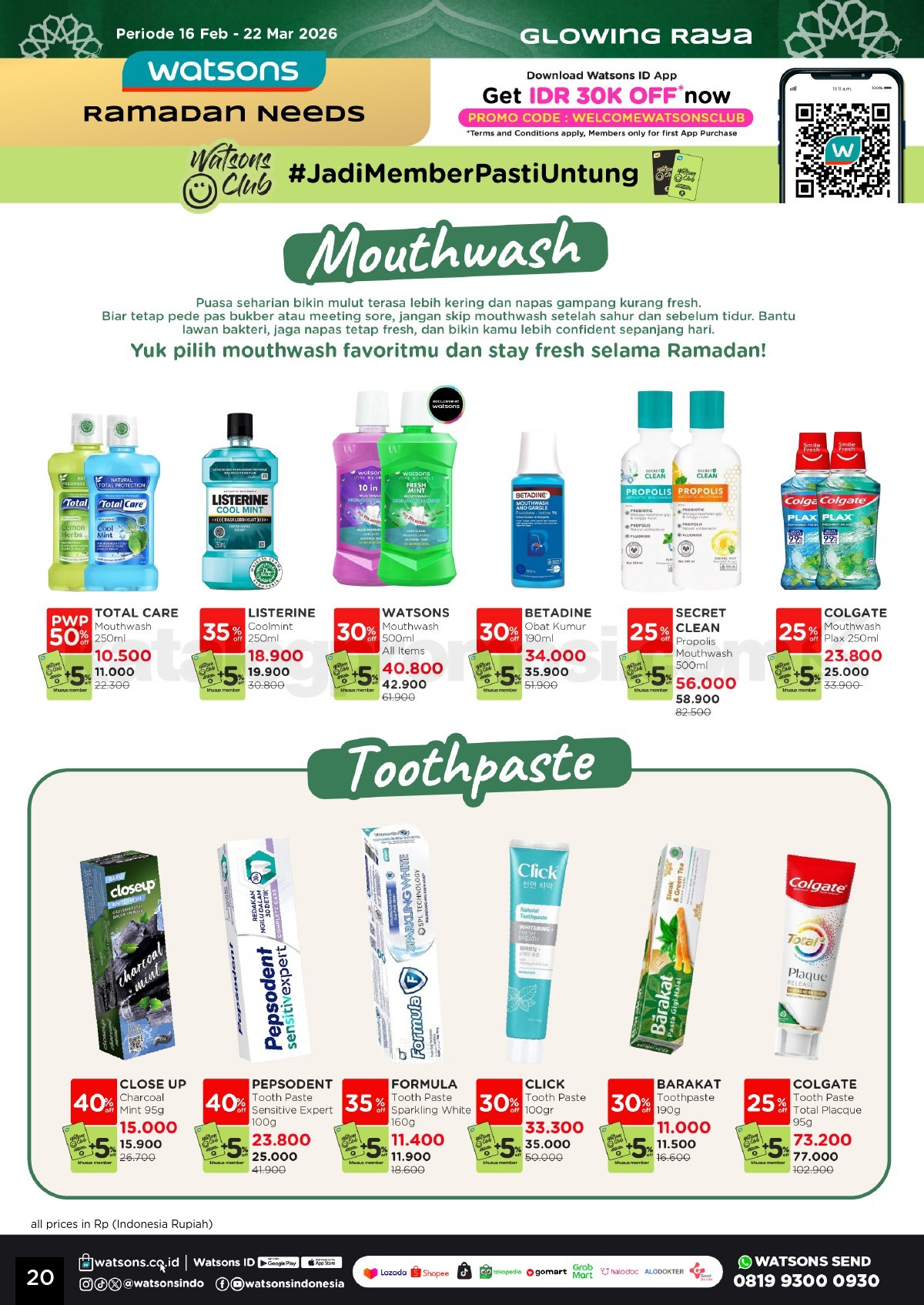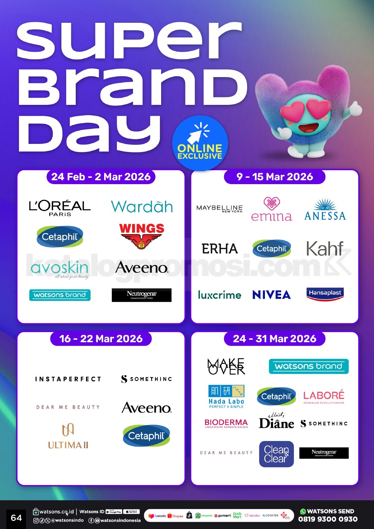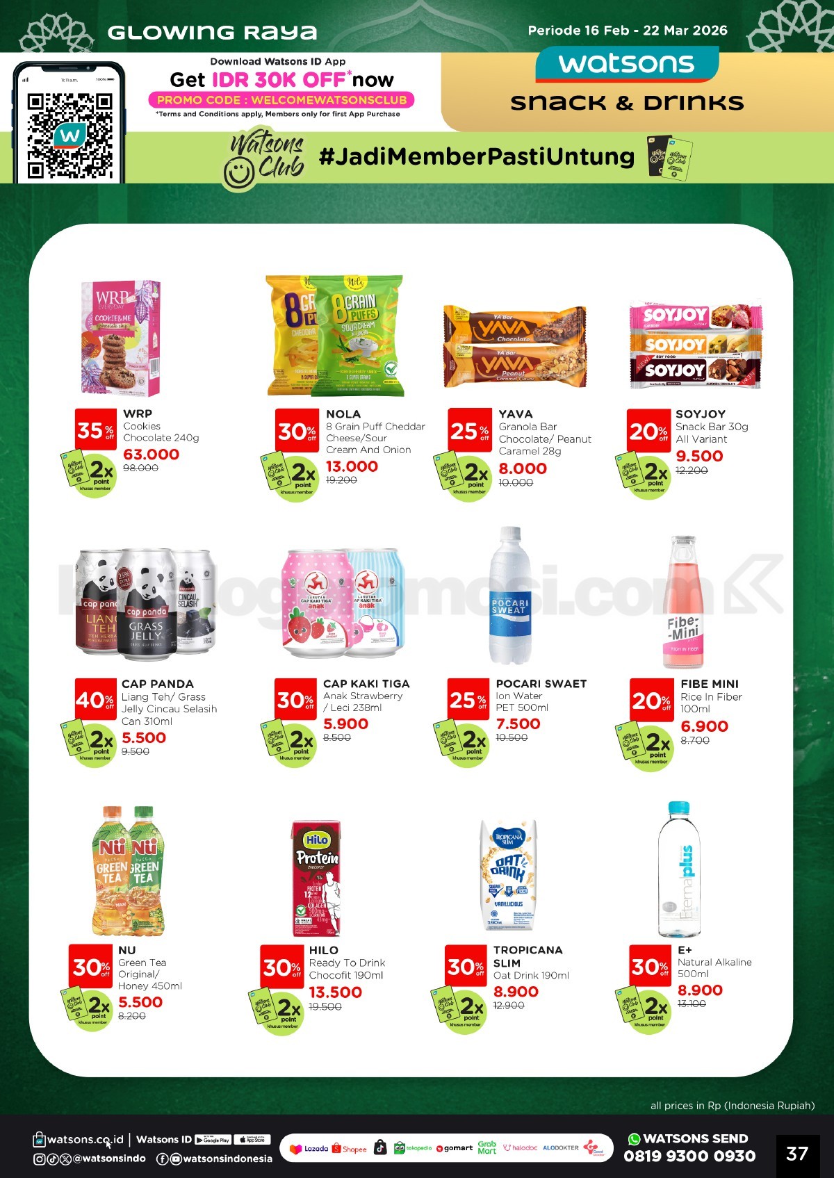 Katalog Belanja Watsons Terbaru GLOWING RAYA Diskon HINGGA 50% berlaku tanggal 16 Februari – 22 Maret 2026