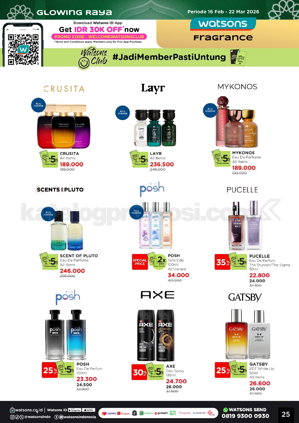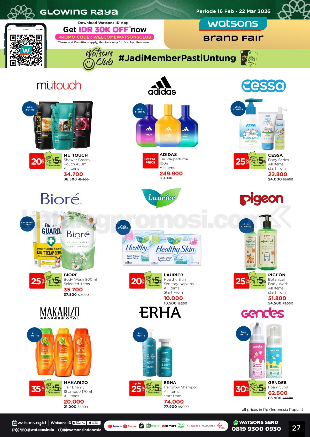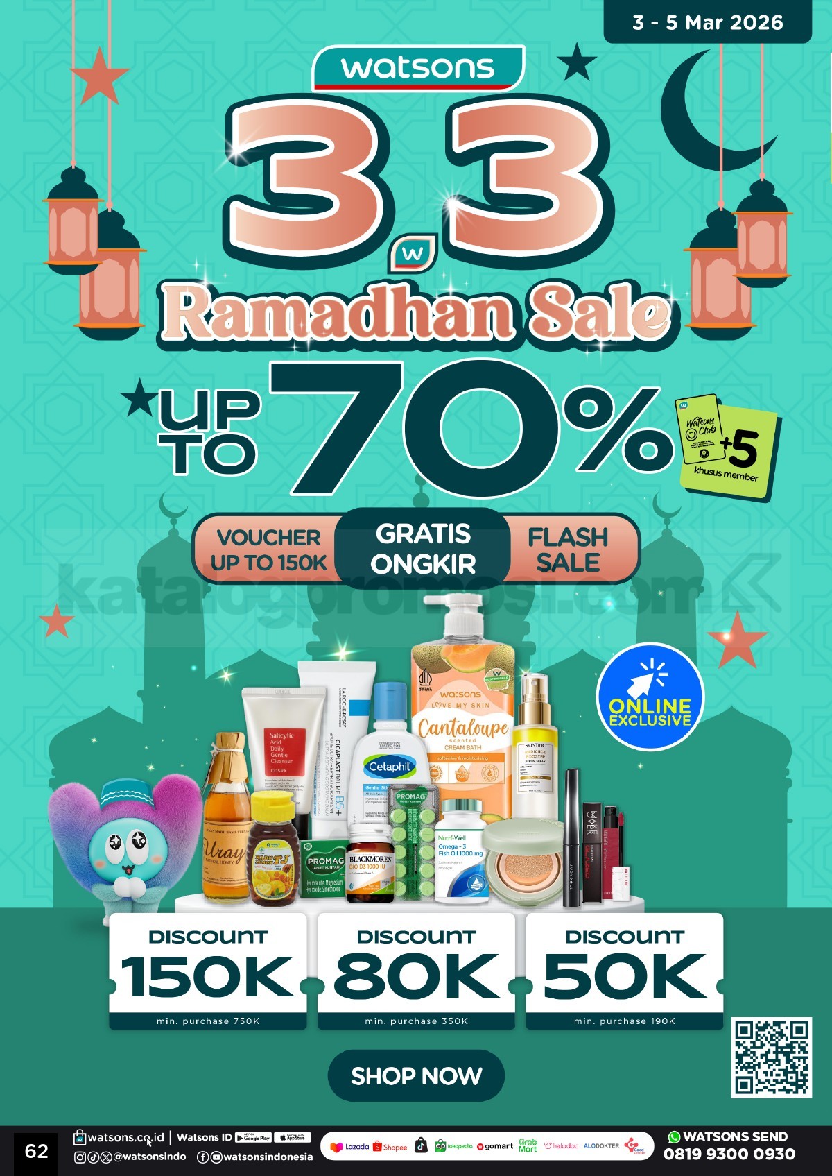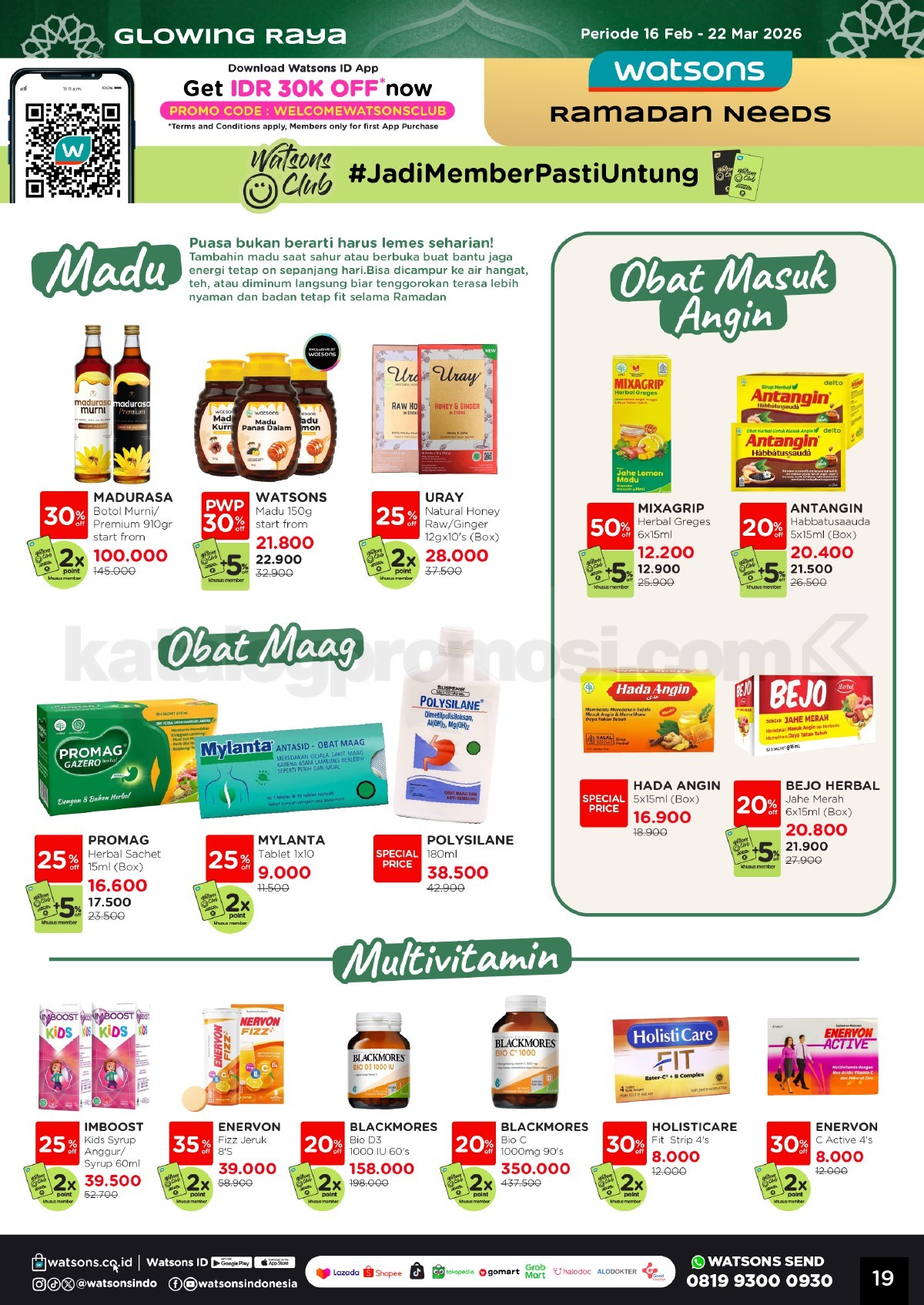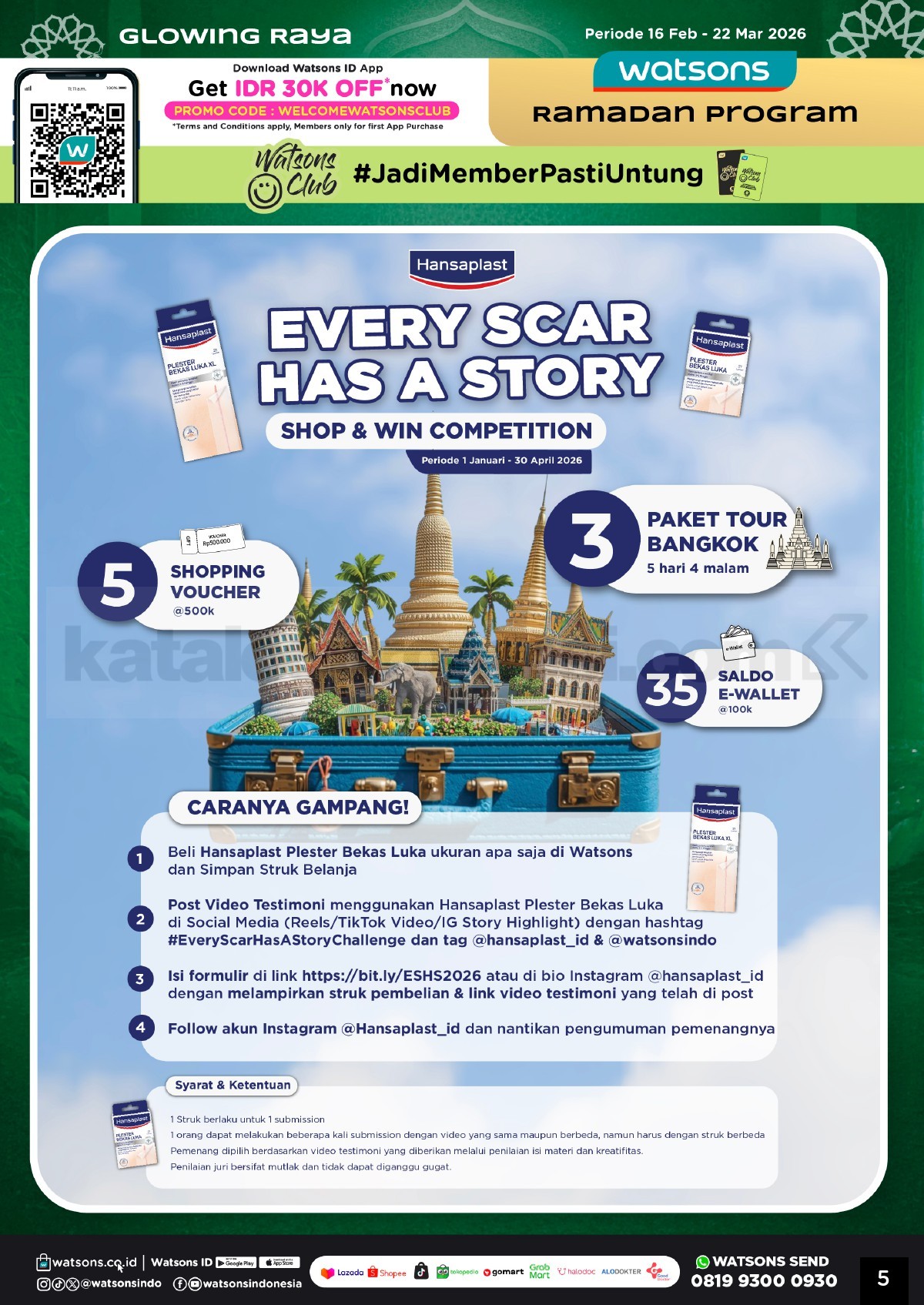 Katalog Belanja Watsons Terbaru GLOWING RAYA Diskon HINGGA 50% berlaku tanggal 16 Februari – 22 Maret 2026
