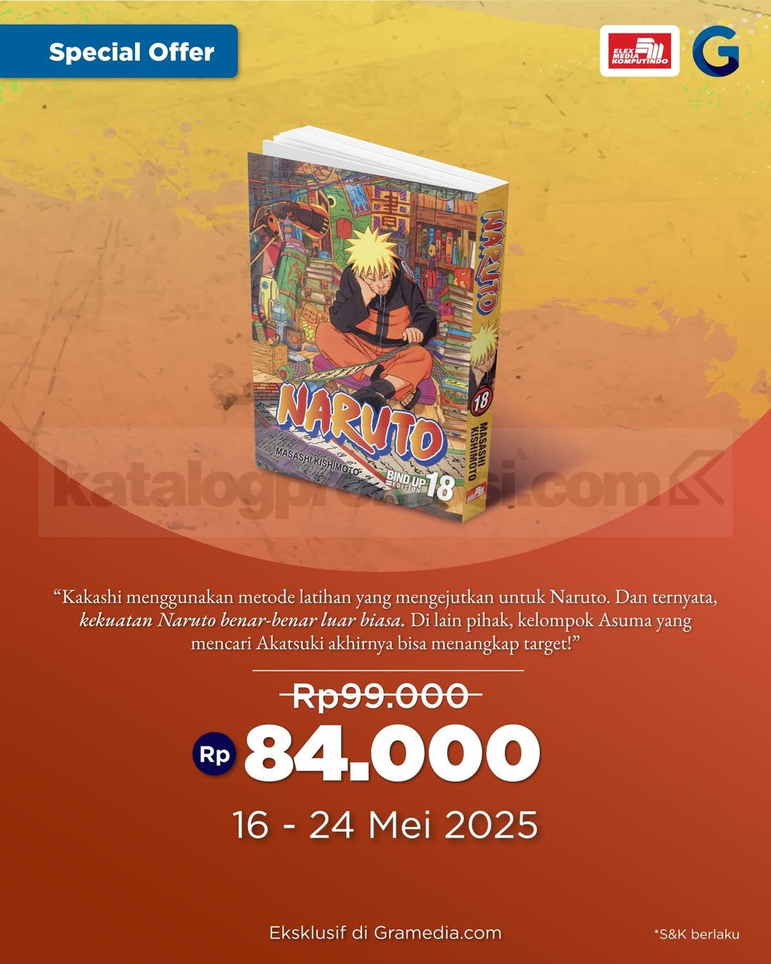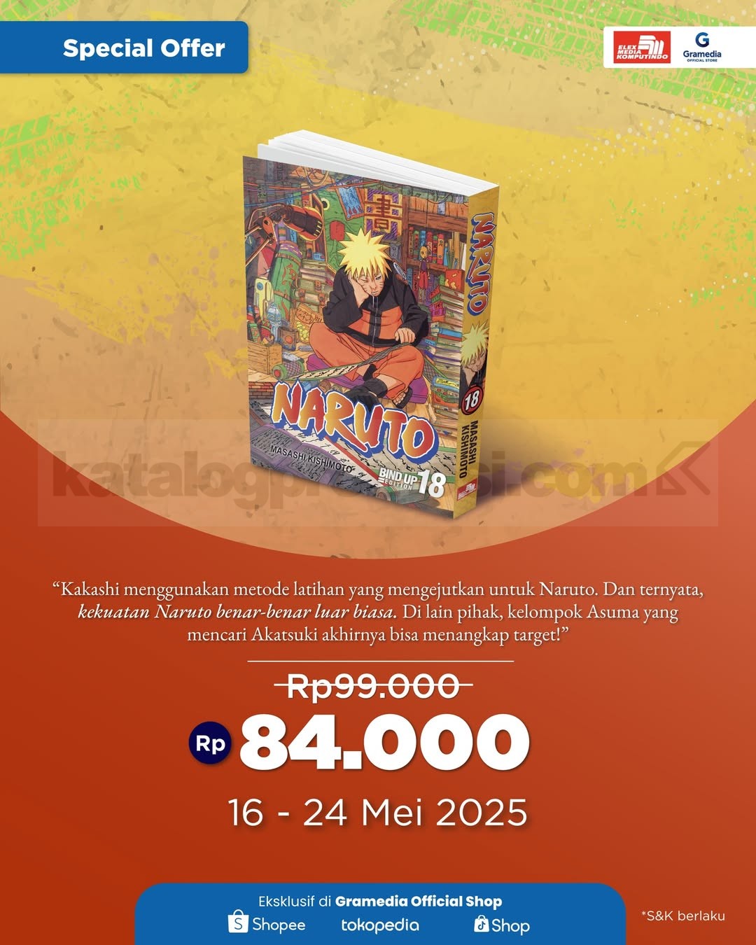 Naruto Bind Up Vol. 18 siap bikin koleksi kamu makin keren! π Kamu bisa dapetin komik ini di Gramedia Online dengan harga spesial Rp84 ribu, cuma sampai 24 Mei 2025! π₯