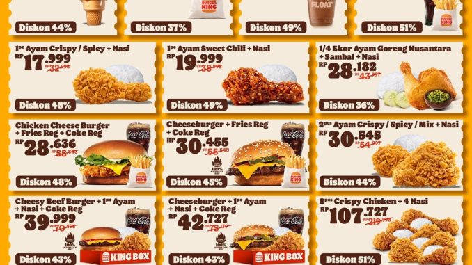 Promo Burger King Kupon NOVEMBER 2025 hemat hingga 50% berlaku sampai 30 November 2025 di seluruh outlet Burger King Indonesia (kecuali bandara).