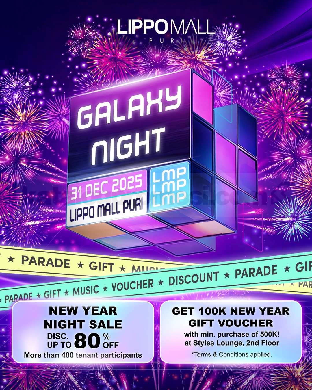 Malam tahun baru rasanya kurang lengkap kalau belum keliling mall sambil belanja. Lippo Mall Puri Galaxy Night New Year Night Sale up to 80% hadir buat kamu yang pengin nutup tahun dengan suasana ramai, lampu malam, dan deretan diskon yang sayang dilewatkan.