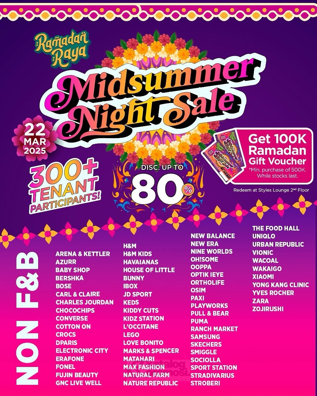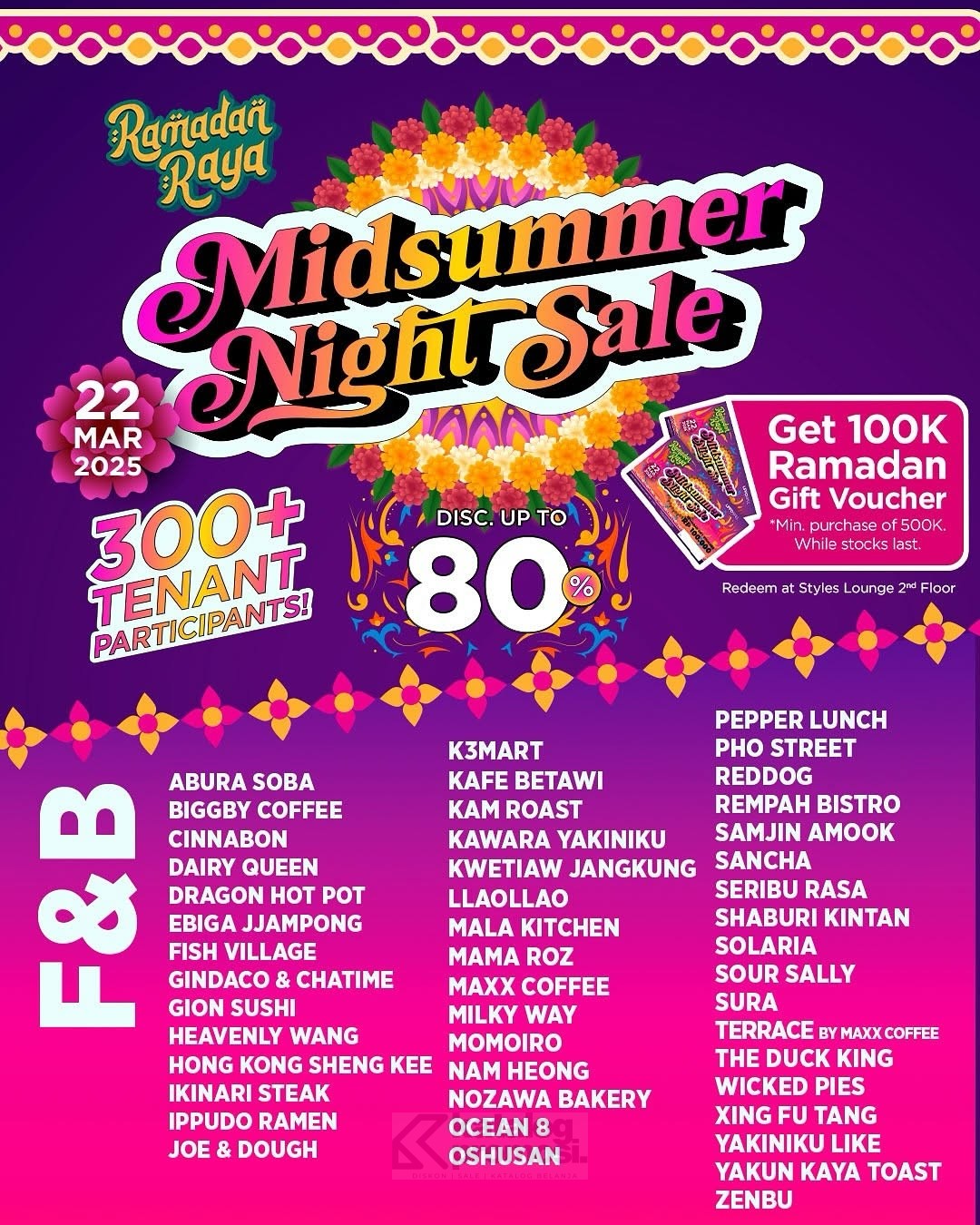 - Diskon hingga 80% di lebih dari 300 tenant.