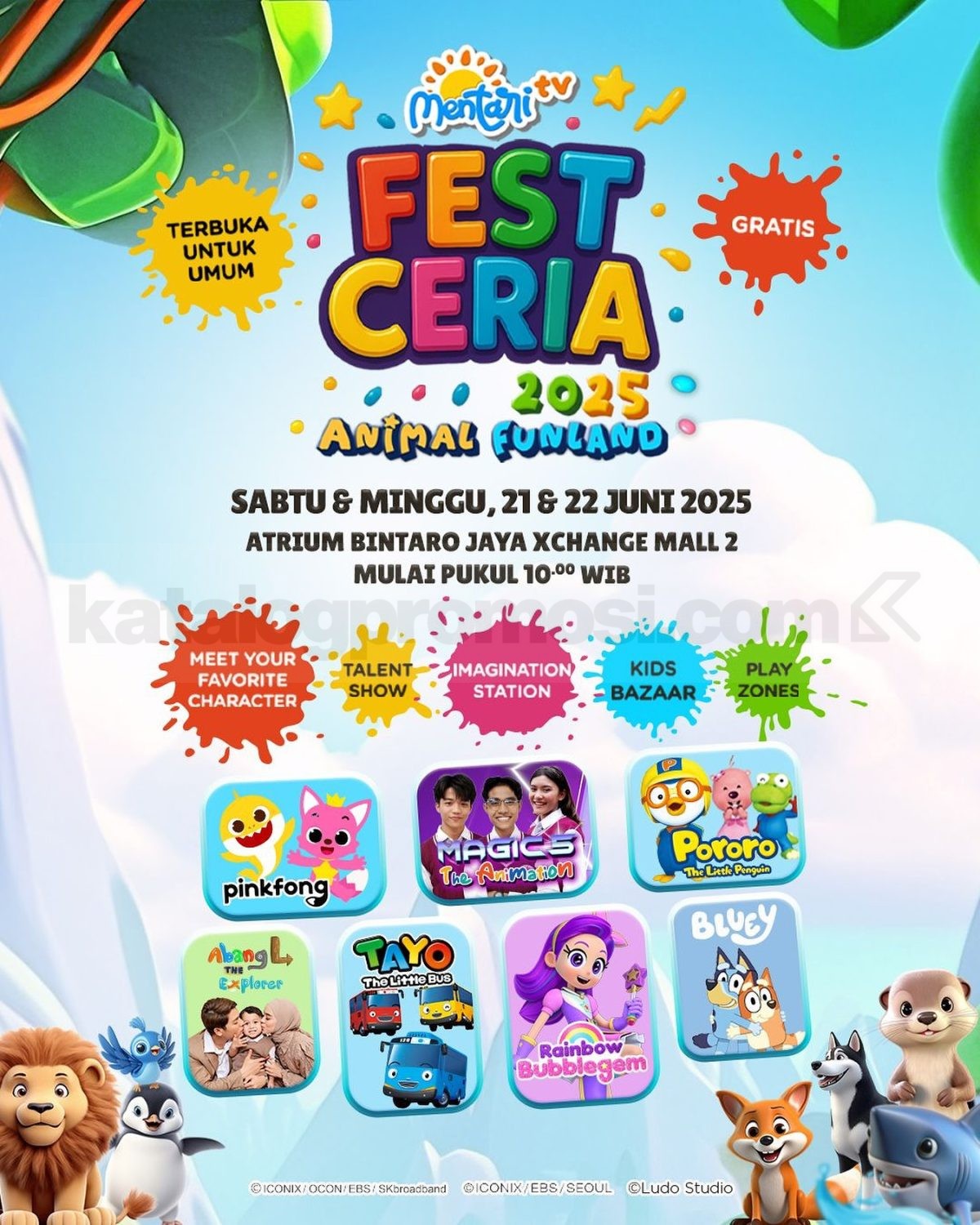 MentariTV Fest Ceria 2025 kembali hadir, kali ini dengan tema seru Animal Funland! Acara ini akan digelar gratis dan terbuka untuk umum di: