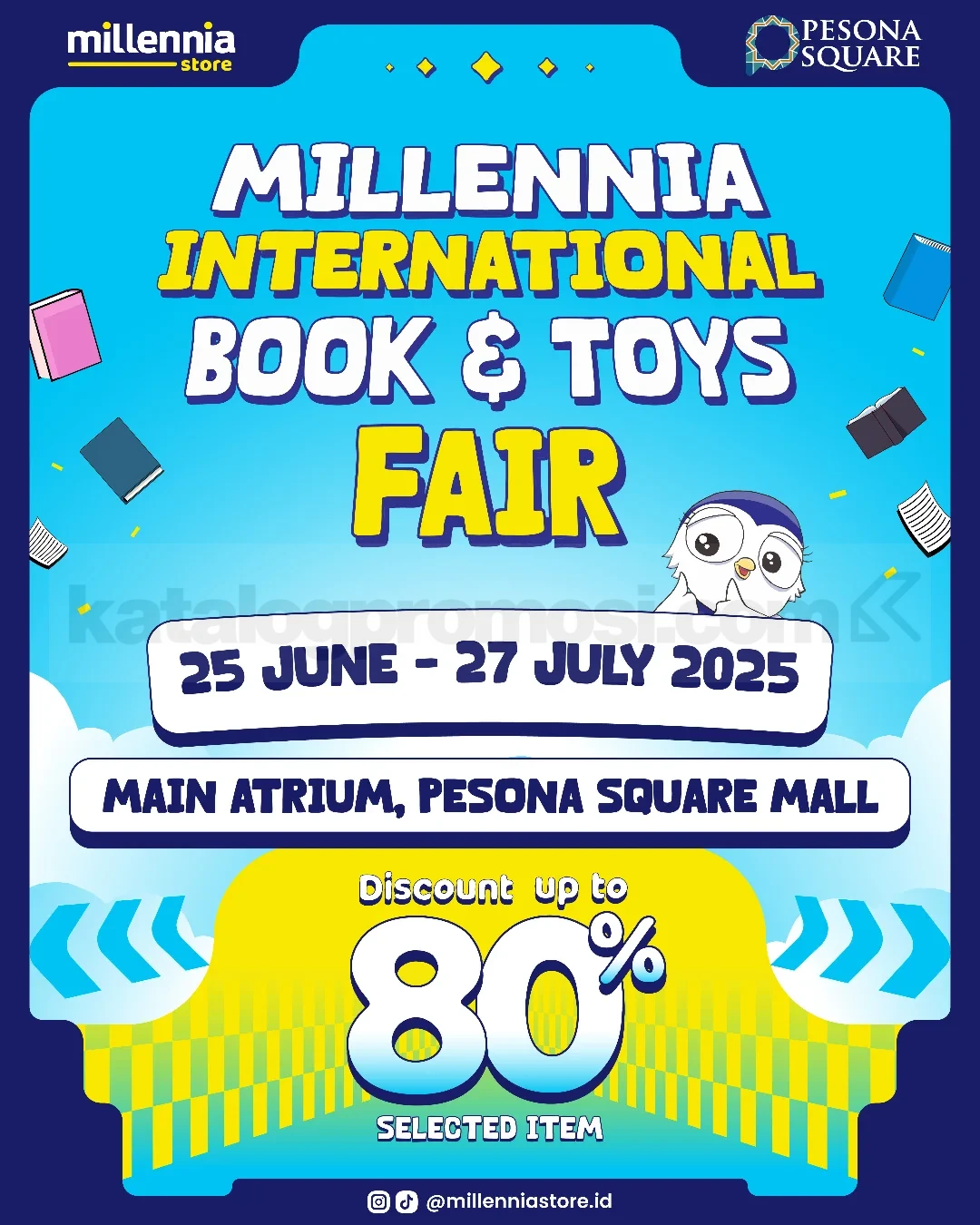 Jangan sampai kelewatan Millennia International Book & Toys Fair di Pesona Square Depok, diskon hingga 80% buat buku dan mainan pilihan cuma sampai 27 Juli 2025!