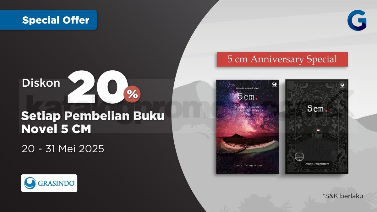 Novel 5 CM Anniversary Special di Gramedia.com Diskon 20%.