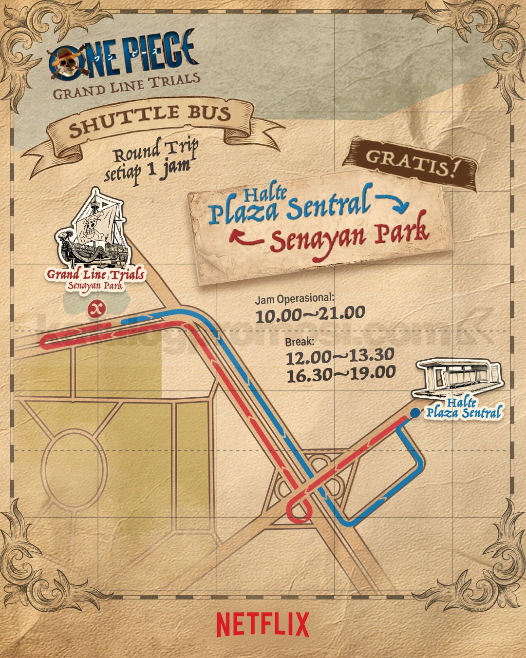 One Piece Grand Line Trials jadi ruang petualangan tematik di Senayan Park Jakarta yang membawa pengunjung masuk ke dunia Grand Line. Event ini dimulai 5 Maret 2026 untuk invitation only, lalu 6 – 15 Maret 2026 terbuka untuk umum.