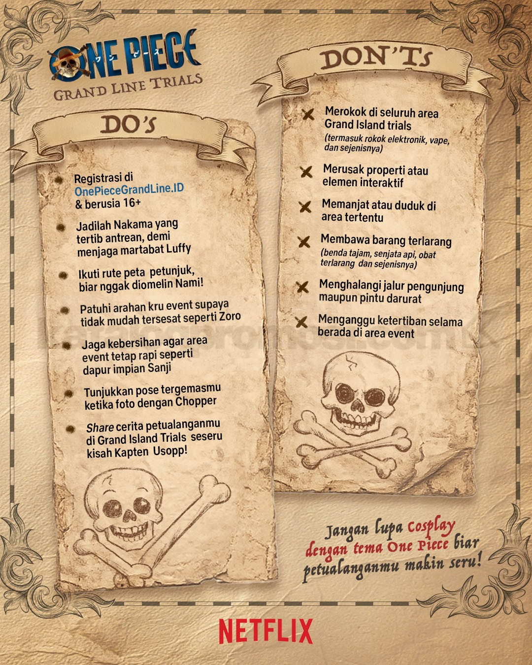 Tema One Piece diperbolehkan selama tetap mengikuti aturan area event.