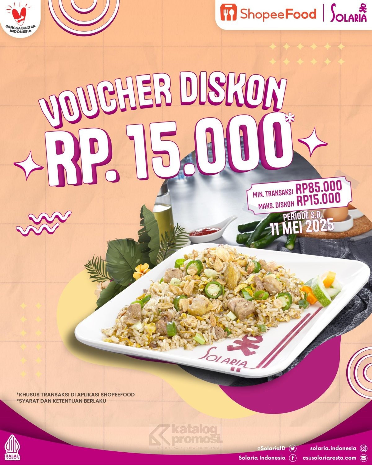 Promo Solaria Flash Sale Nasi Goreng Spesial Rp. 29.000 pesan via ShopeeFood dengan kuota terbatas berlaku mulai tanggal 15 – 21 Desember 2025